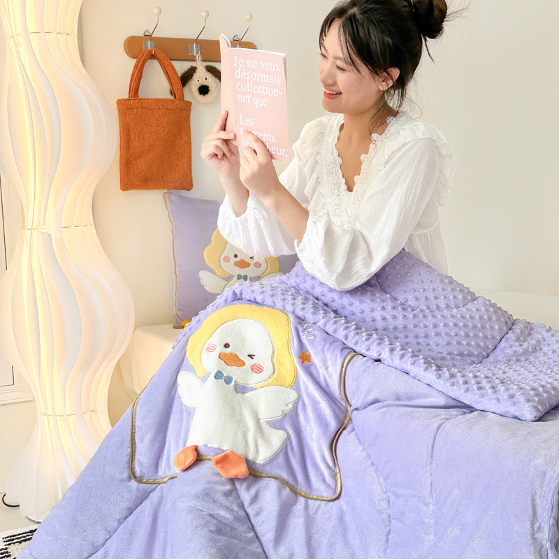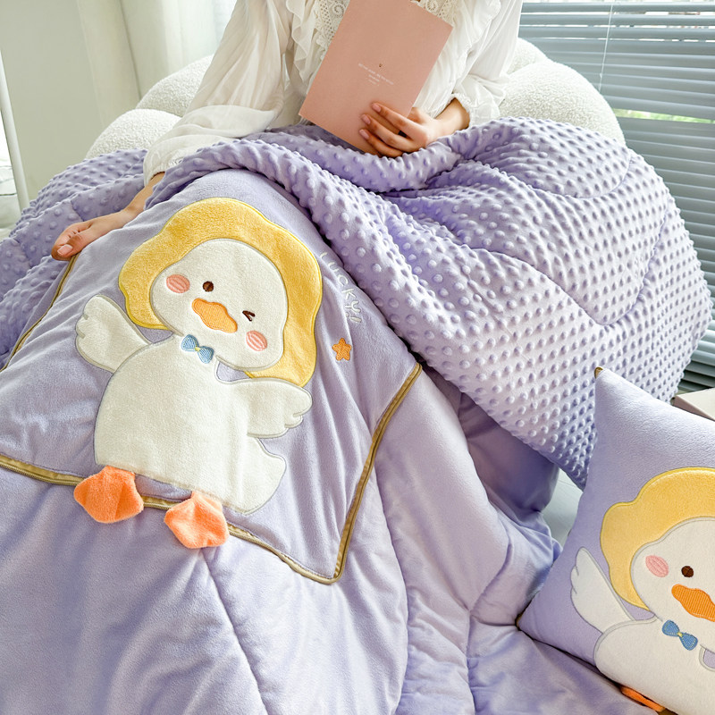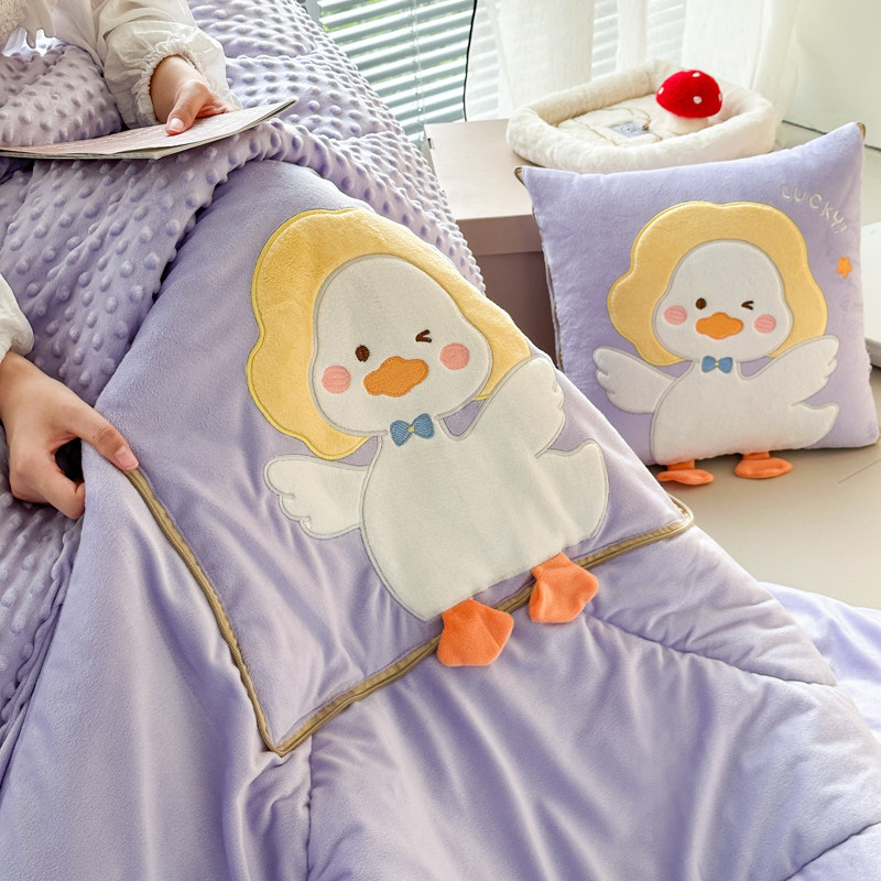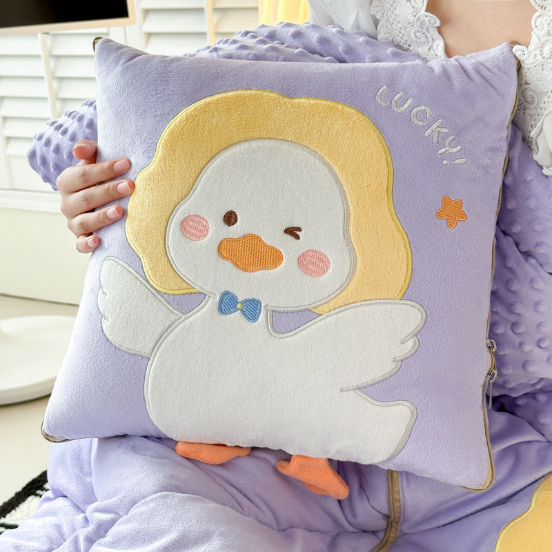 这款加厚加绒豆豆绒卡通贴布绣多功能抱枕被,集舒适与实用于一体。采用柔软亲肤的豆豆绒面料,内里加绒保暖,触感细腻,四季皆宜。正面精美卡通贴布绣设计,童趣可爱,增添居家温馨氛围。一物两用,展开可作为午睡毯或车载盖被,折叠后变身靠垫抱枕,适合沙发、汽车、床铺等多种场景。轻便易携,是居家、办公、旅行、午休的理想伴侣。无论是自用还是送礼,都能带来温暖与便利,让舒适触手可及。