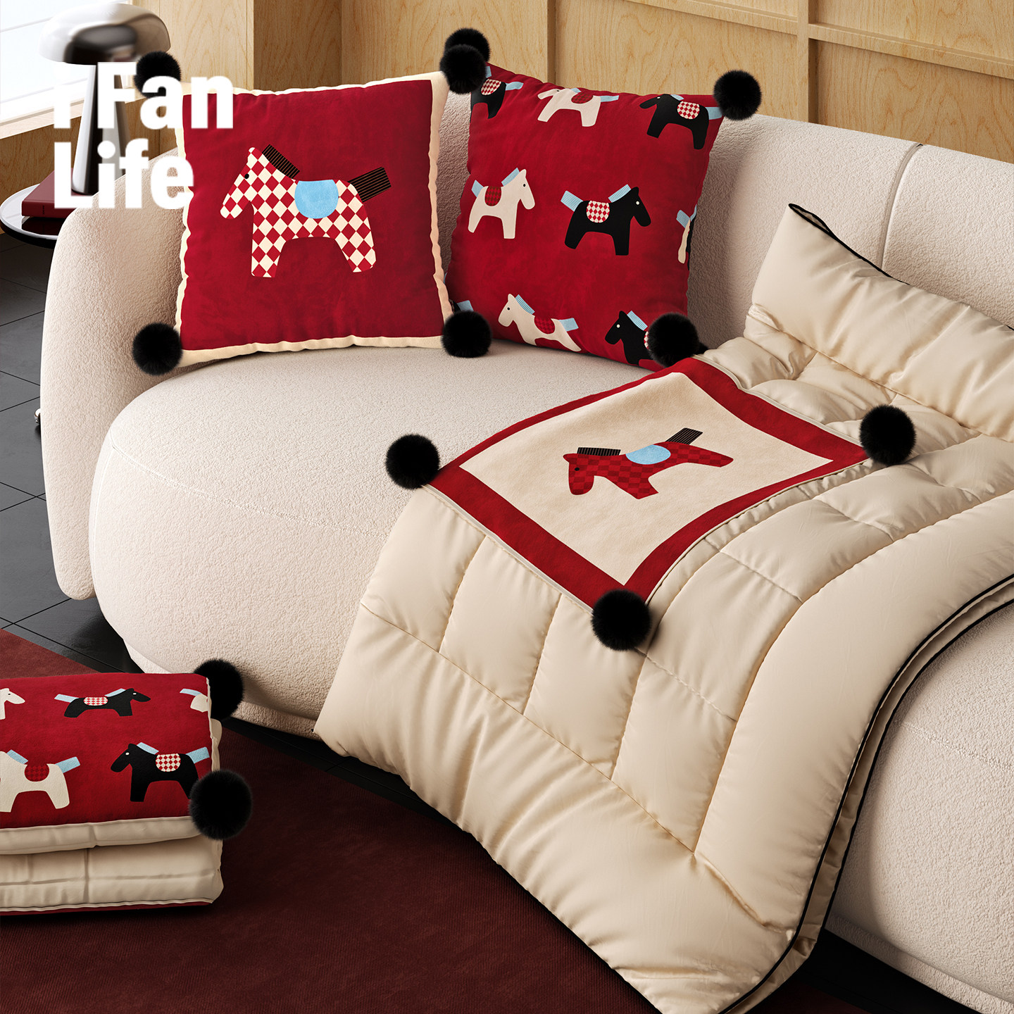 马来有福2026新款马年抱枕抱枕被二合一毯子,融合传统生肖元素与现代实用设计,专为马年打造。采用优质亲肤面料,柔软厚实,保暖舒适,四季皆宜。独特抱枕与盖毯二合一设计,展开为100cm×150cm大尺寸盖毯,折叠后变身精致抱枕,轻松收纳。适用于居家、办公室、车载等多种场景,午休、出行、追剧皆享惬意。精致刺绣“马到成功”寓意吉祥,既是实用好物,也是新年好礼。轻便易携,一物多用,让温暖与福气常伴左右,开启活力满满的新一年。