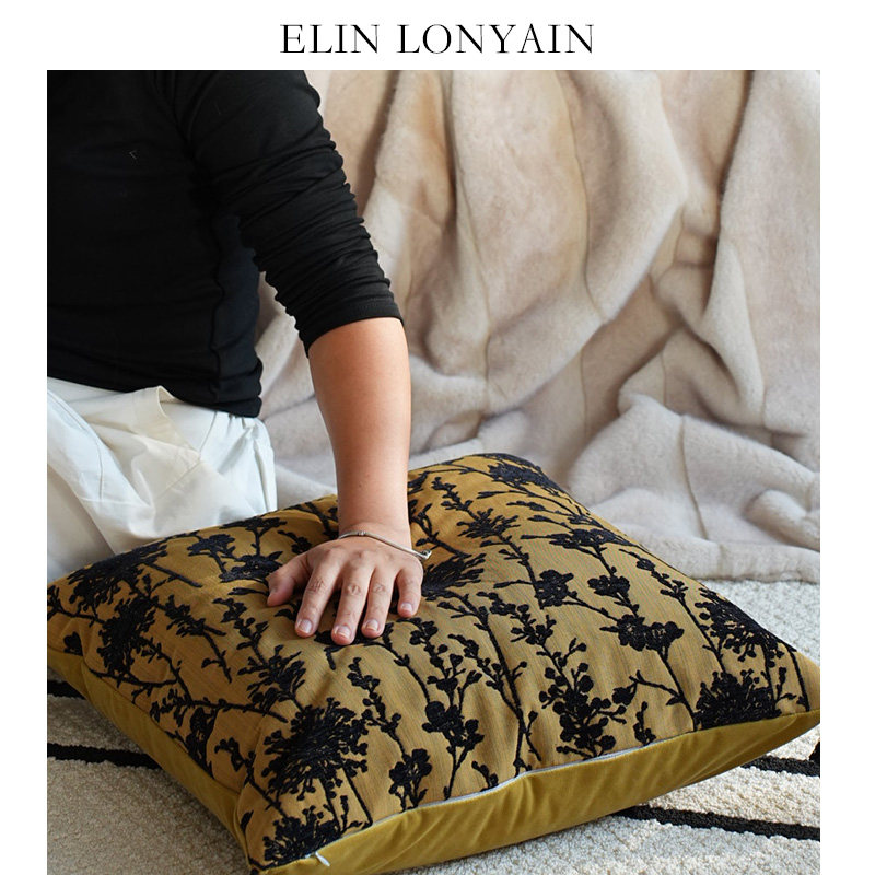 法式中古抱枕复古美式客厅沙发轻奢腰靠枕靠垫雪尼尔60套黑色靠背