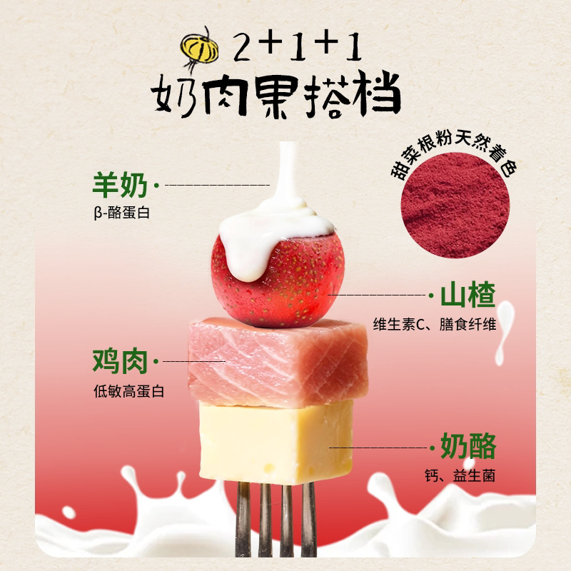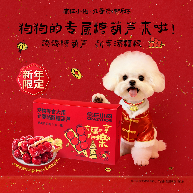 疯狂小狗联合九子岩谛听塔推出新年限定款狗零食礼包——“糖葫芦奶酪磨牙棒”,融合传统年味与宠物健康理念。精选优质肉干与天然奶酪,制成形似糖葫芦的趣味造型,富含蛋白质与钙质,帮助狗狗磨牙洁齿、强健口腔。每根磨牙棒均经低温烘焙,保留食材原味,口感酥脆不伤牙。礼包内含多种口味肉干奖励,满足挑嘴爱宠需求。包装融入九子岩文化元素,寓意吉祥守护,既是宠物新年好礼,也传递健康陪伴的温暖心意。适合全犬种,让毛孩子在新年里吃得开心、嚼得健康!