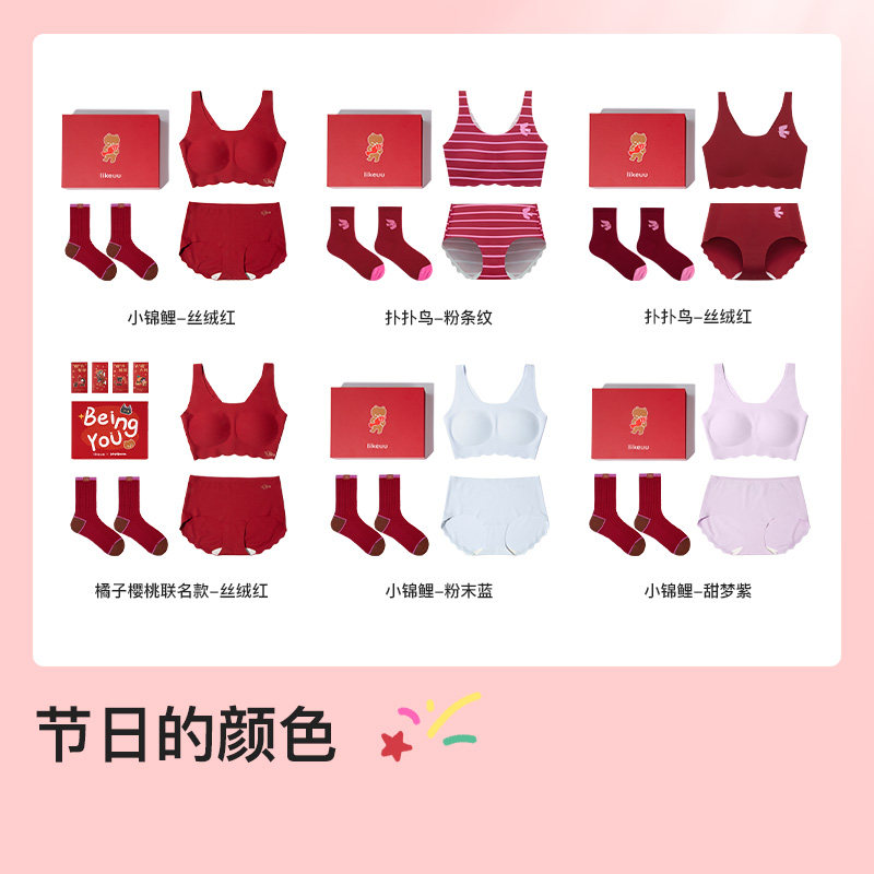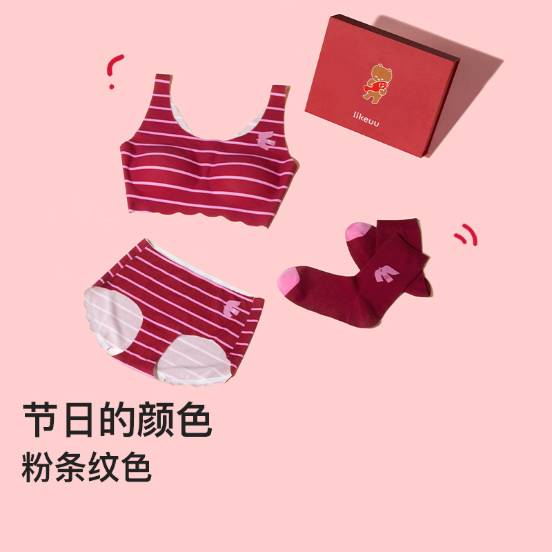 天猫ubras儿童likeuu红色内衣礼盒新年本命年发育期少女文胸马年礼物