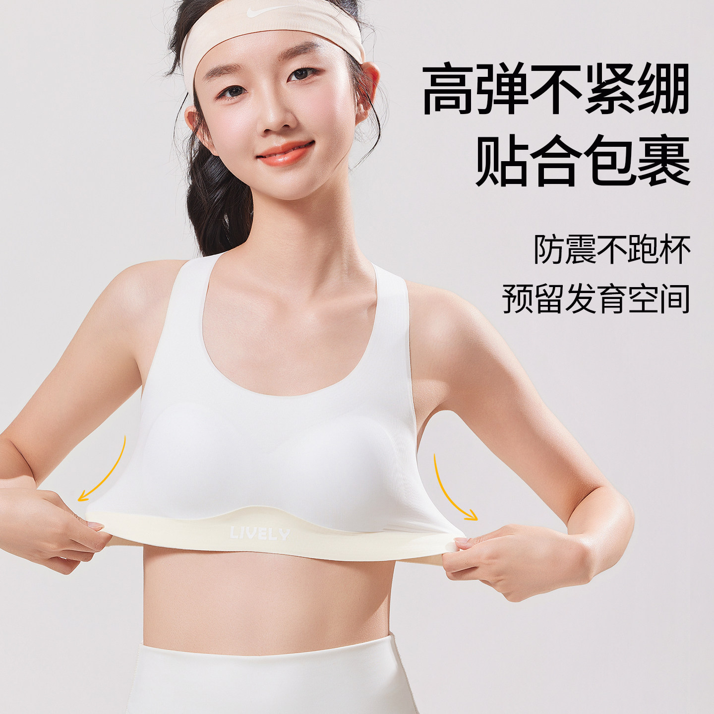 天纯棉内衣女运动透气初高中学生背心少女防震固定杯垫无痕文胸抹胸