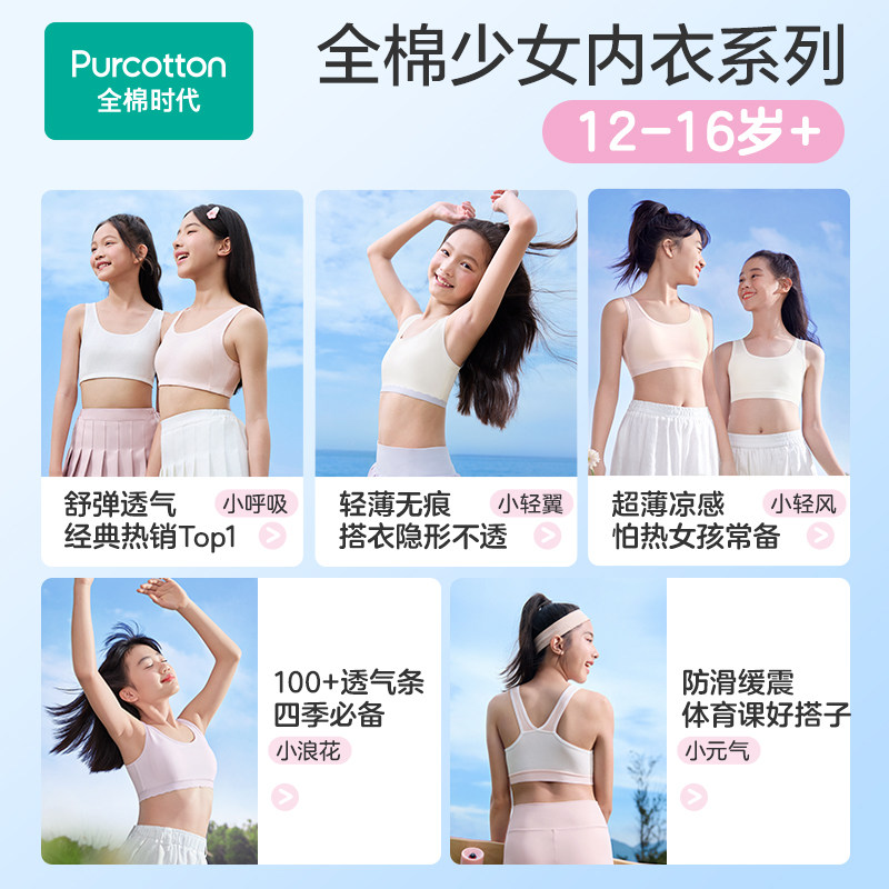 天猫全棉时代少女发育期内衣儿童二三阶段女孩小背心运动抗菌透气文胸