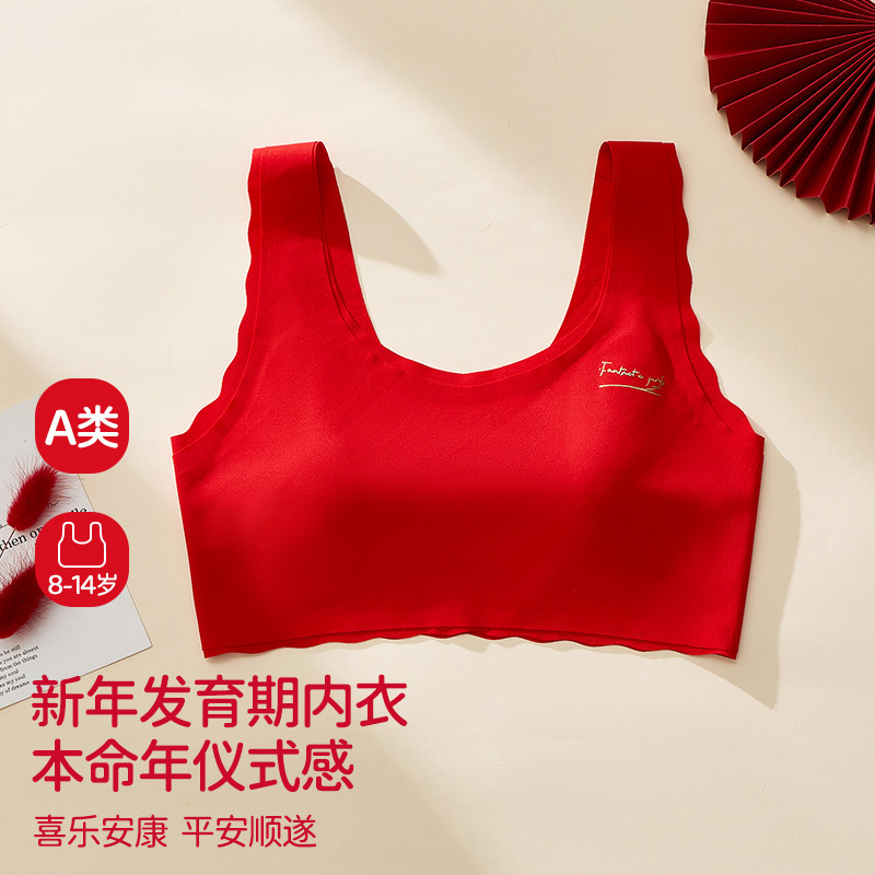 天猫忆括女童红色内衣2026马年本命年发育期小学生背心少女文胸防凸点