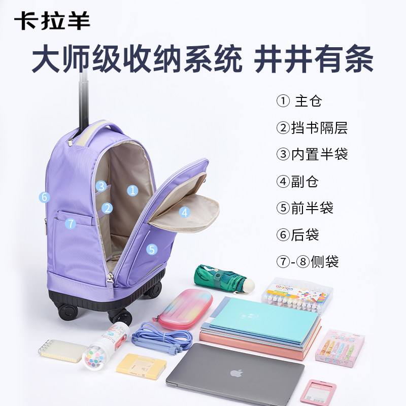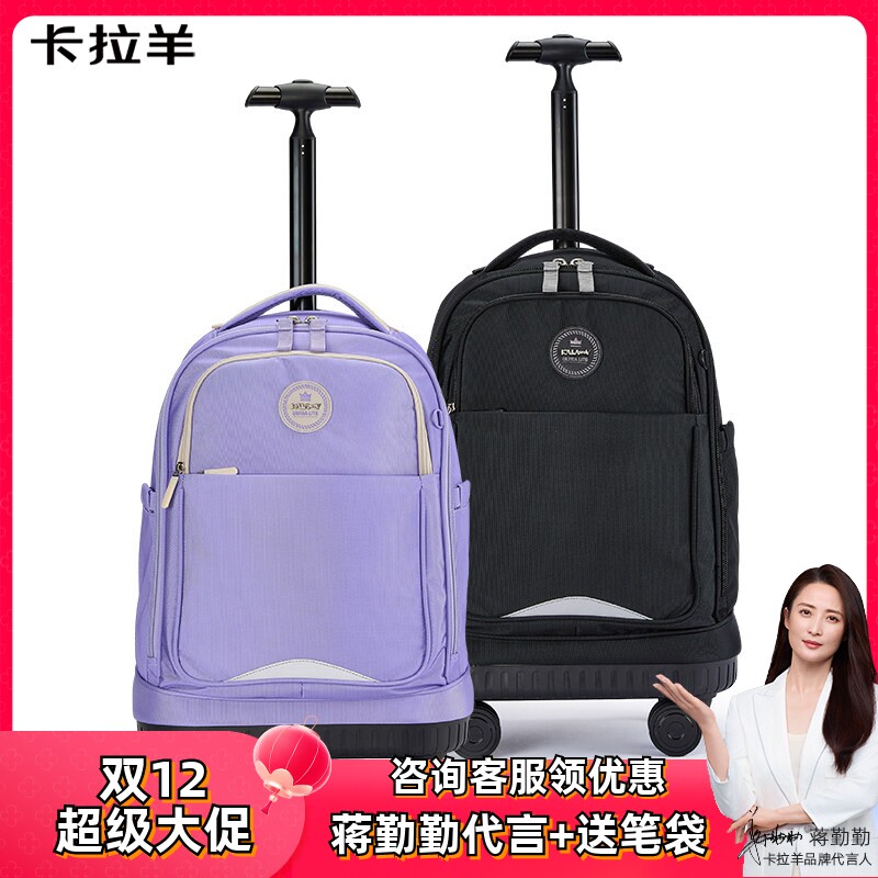 天猫卡拉羊中小学生拉杆书包减负男女生儿童大容量可爬楼初高中拉杆包