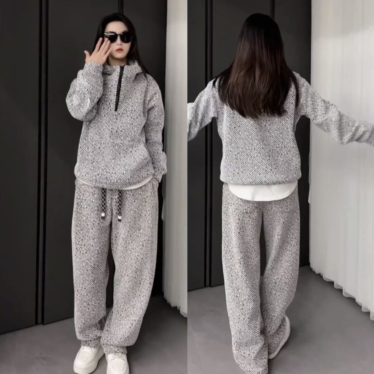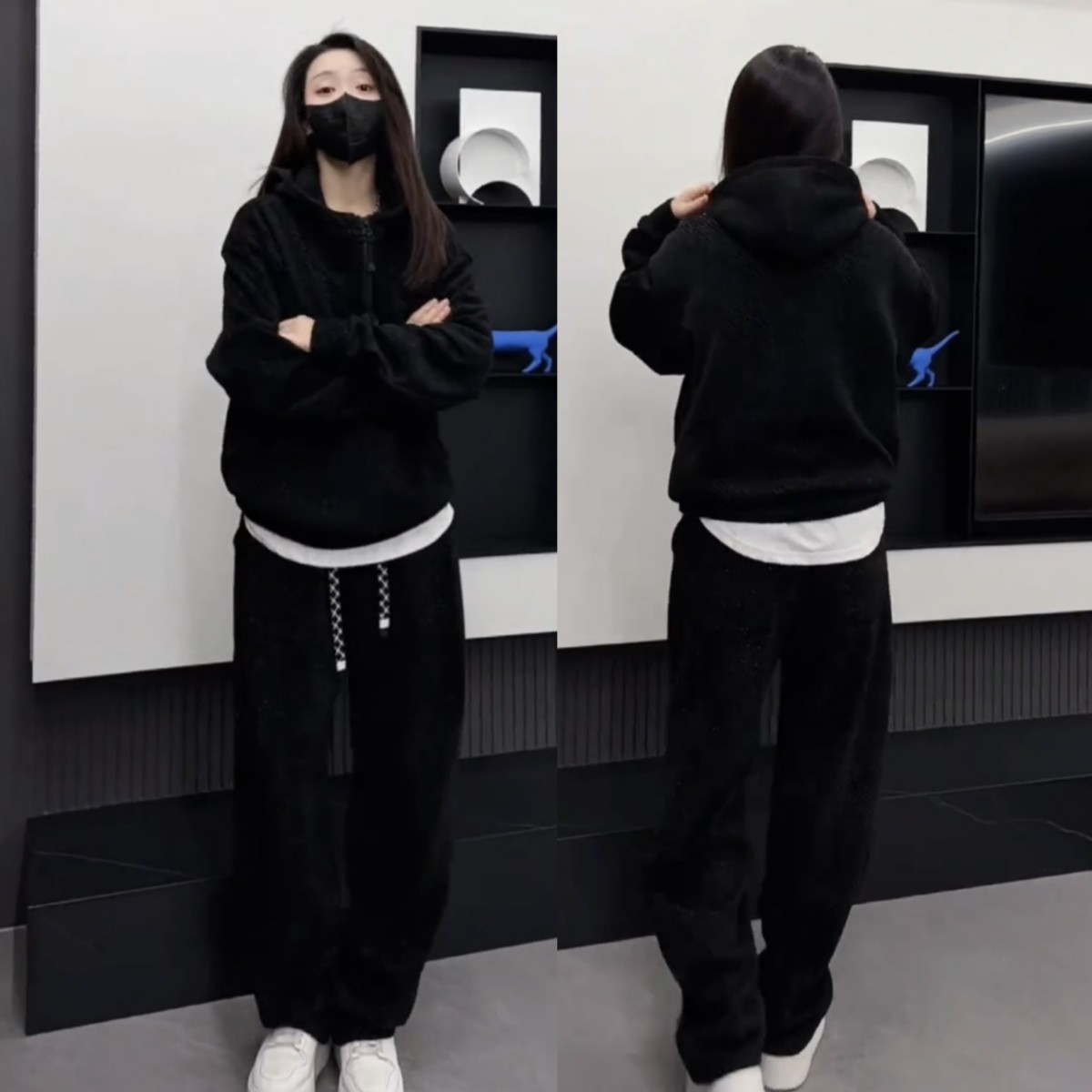 天PLUS CRASH冬季加厚绒保暖卫衣卫裤男女同款多结构抽褶设计感套装
