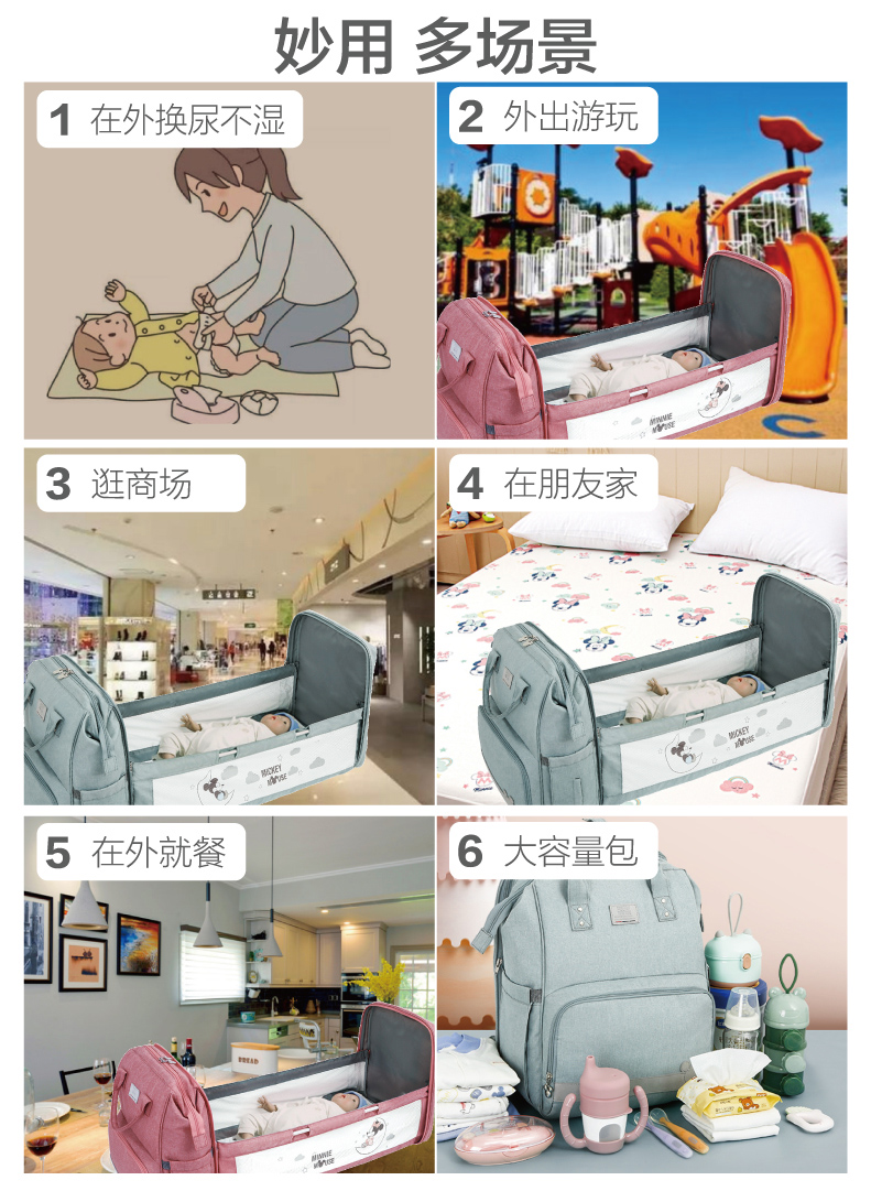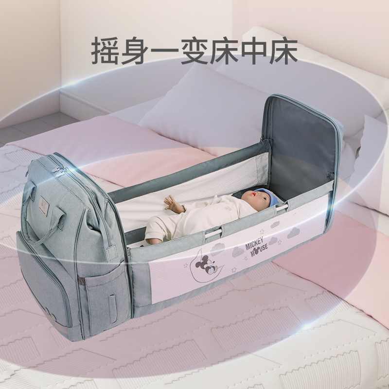 天猫迪士尼便携式妈咪包折叠床中床大容量多功能背包床外出母婴包双肩
