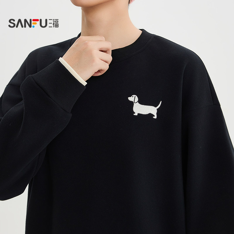 天猫三福2025冬季男士趣味线条狗卫衣 休闲时尚圆领落肩上衣512579