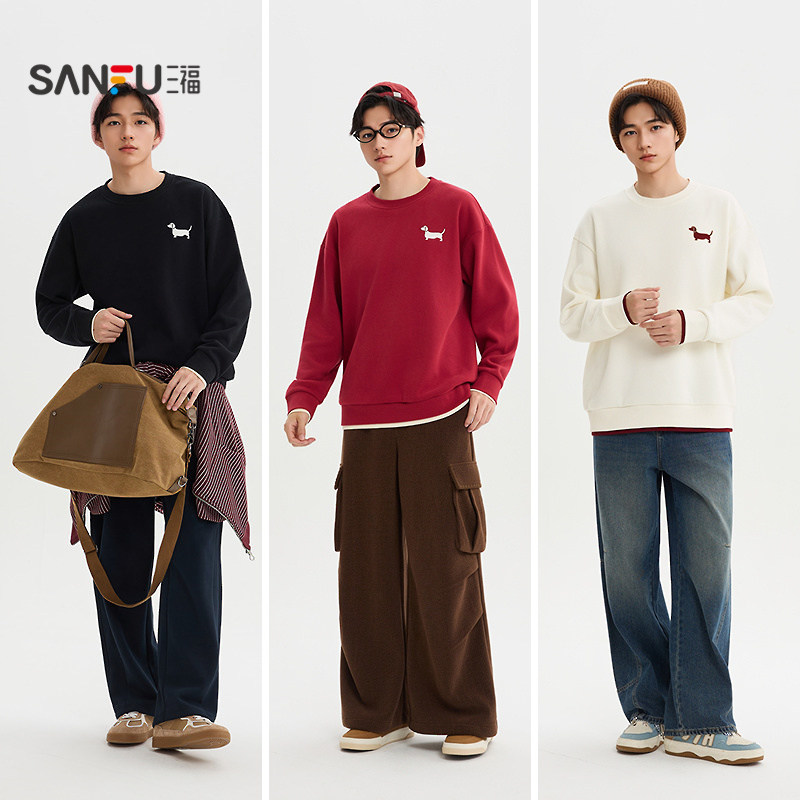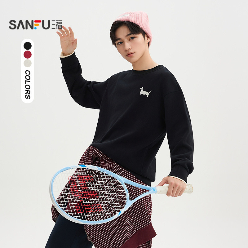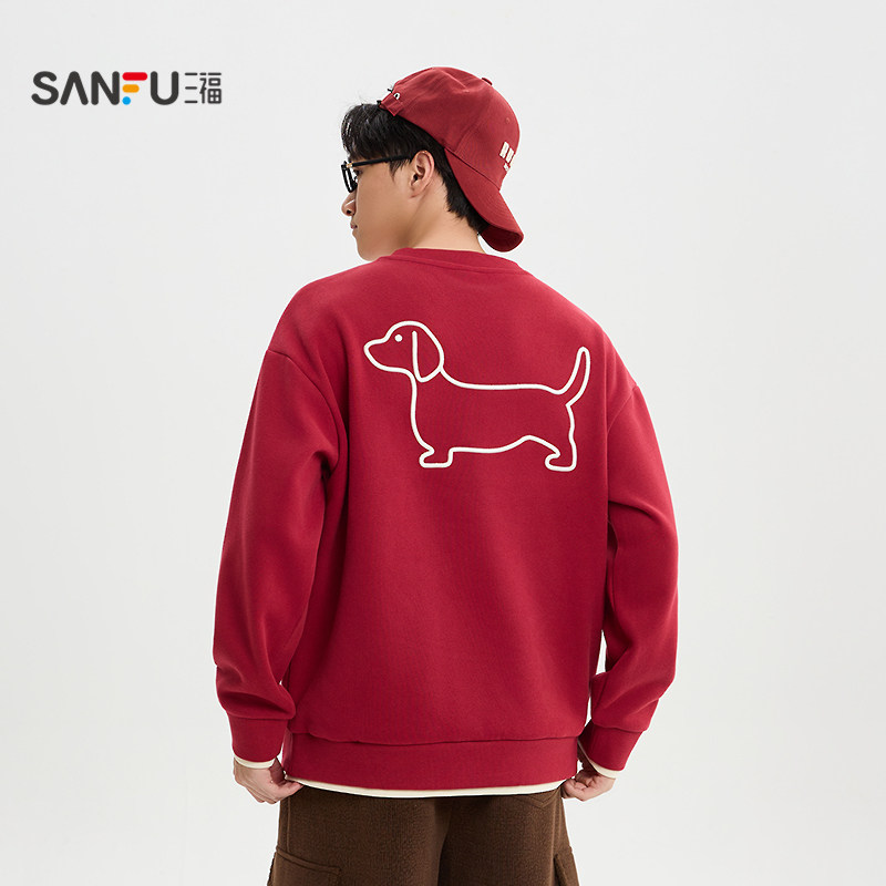 三福2025冬季男士趣味线条狗卫衣(款号:512579)以简约休闲风格诠释冬日时尚。采用柔软亲肤的棉质面料,保暖透气,穿着舒适。宽松落肩设计搭配经典圆领,轻松打造随性慵懒的街头造型。胸前趣味线条狗图案以简约笔触勾勒,个性十足又不失俏皮感,为整体增添亮点。无论是搭配牛仔裤、休闲裤,还是作为叠穿内搭,都能轻松驾驭日常出行、朋友聚会等场合。这款卫衣兼顾时尚与实穿性,是男士冬季衣橱的百搭之选,展现年轻活力与独特品味。