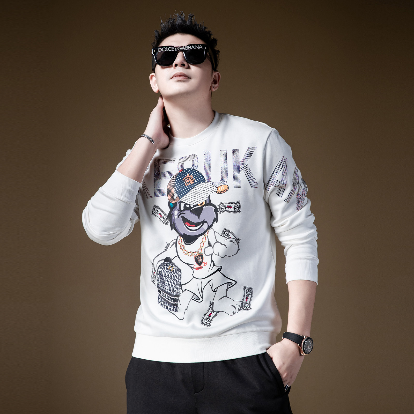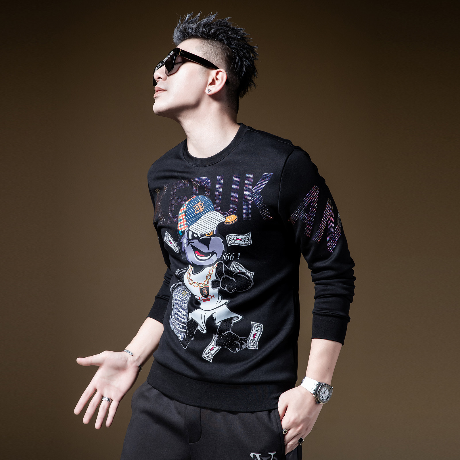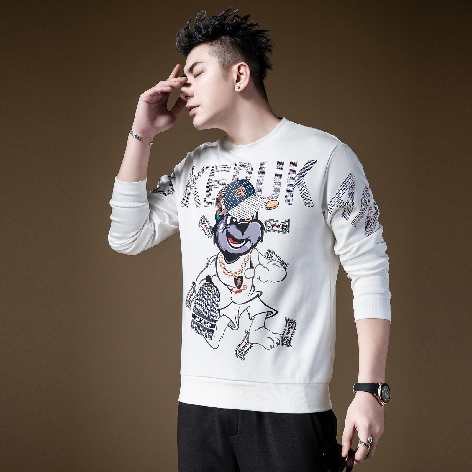 天猫BM欧美高街外套潮流小子个性印花烫钻卫衣男潮ins圆领套头长袖秋