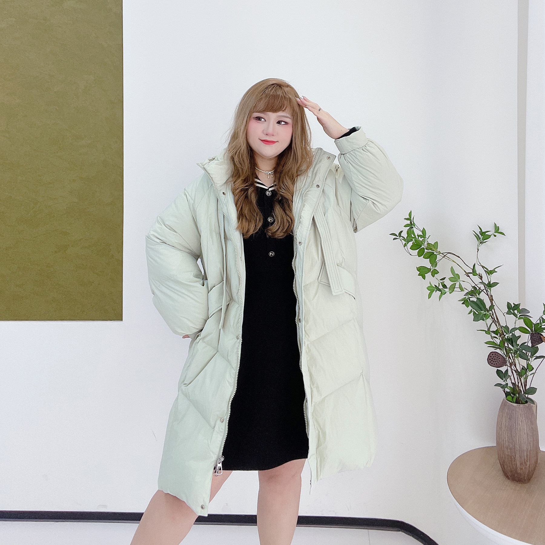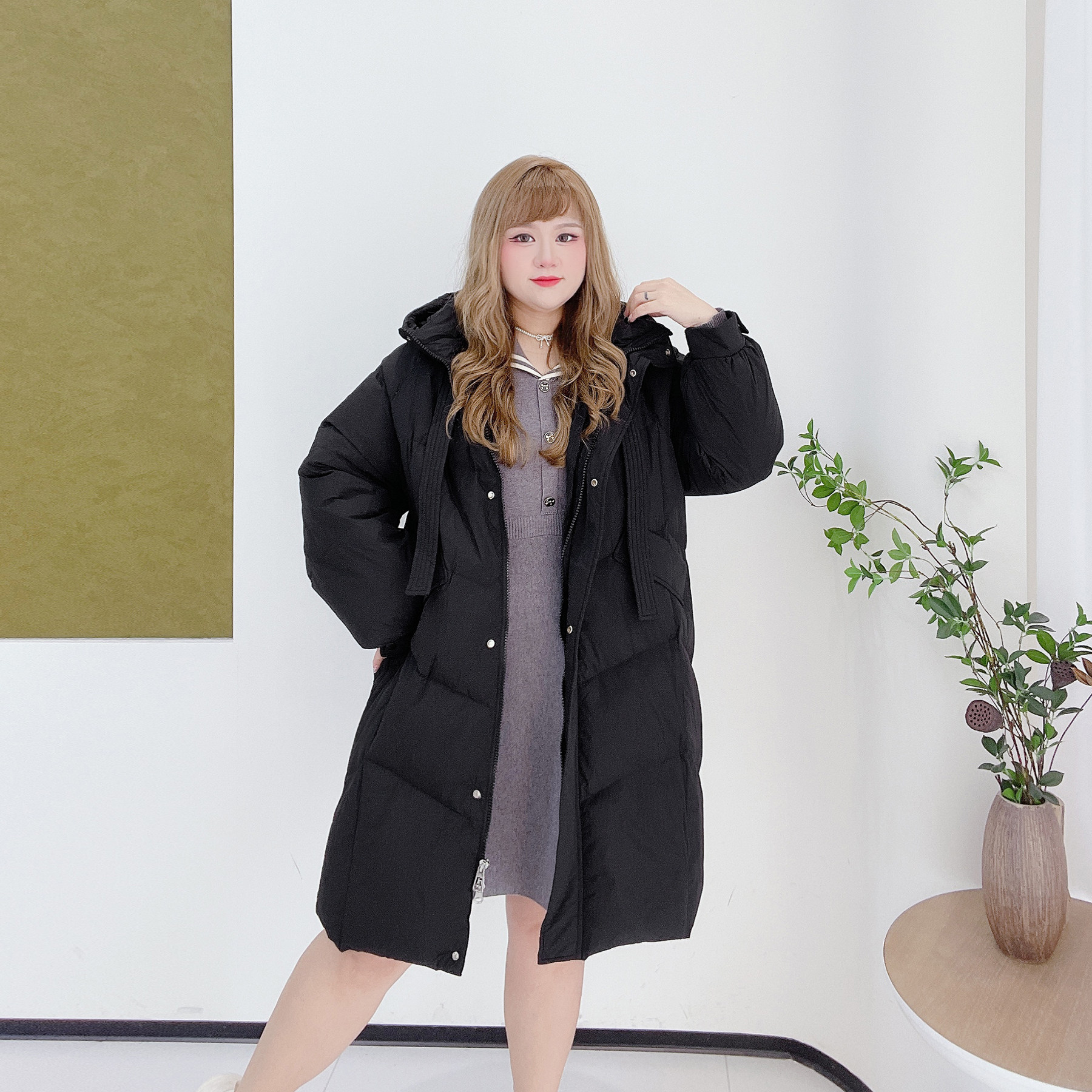 淘连帽中长款羽绒服女过膝收腰显瘦保暖外套冬季新款