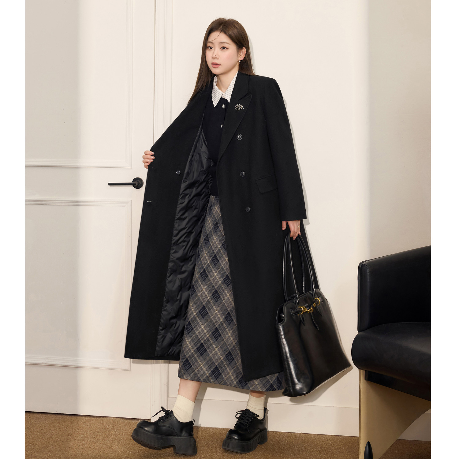 天猫蓝语大码女装90白鸭绒保暖羽绒大衣冬新款羊毛混纺毛呢外套中长款