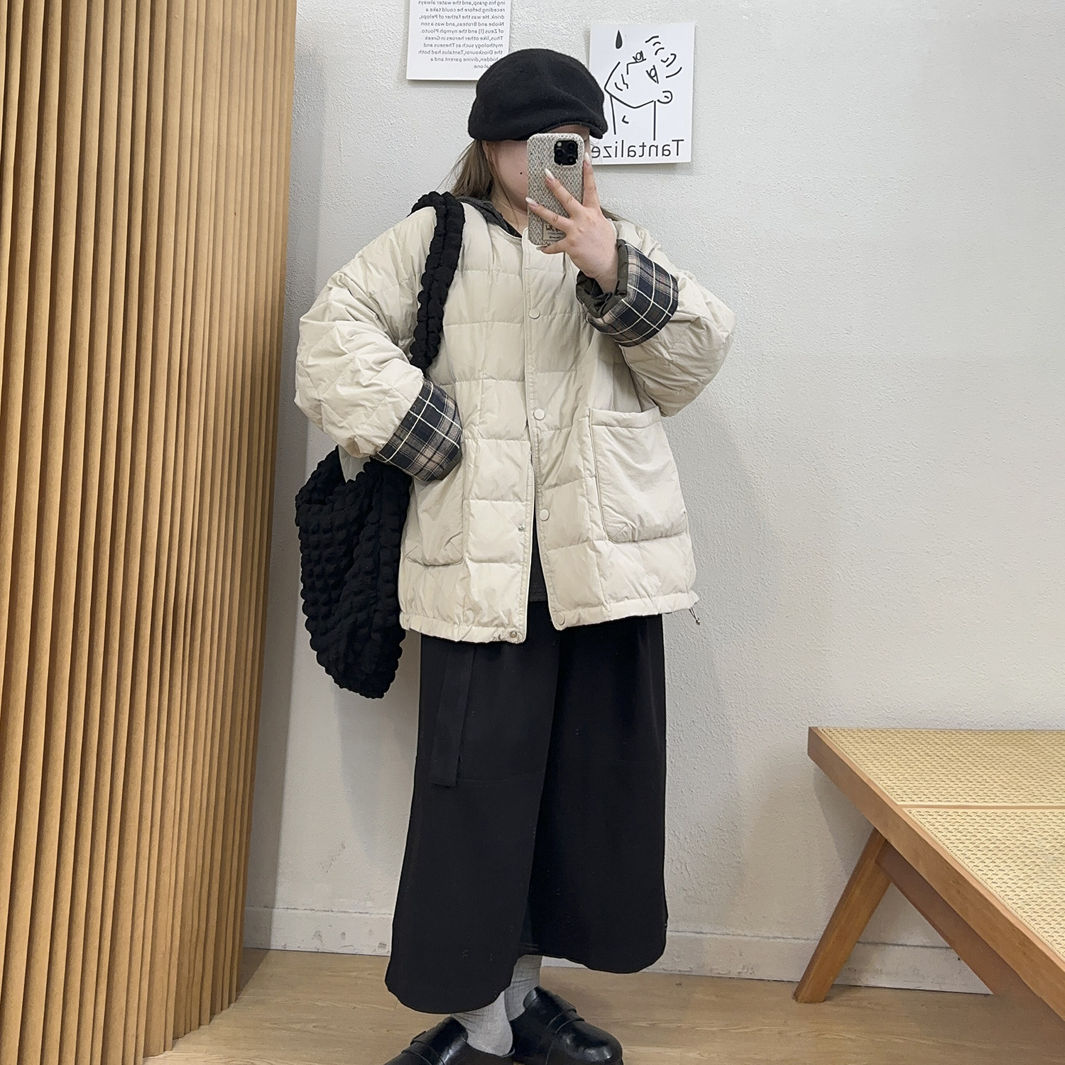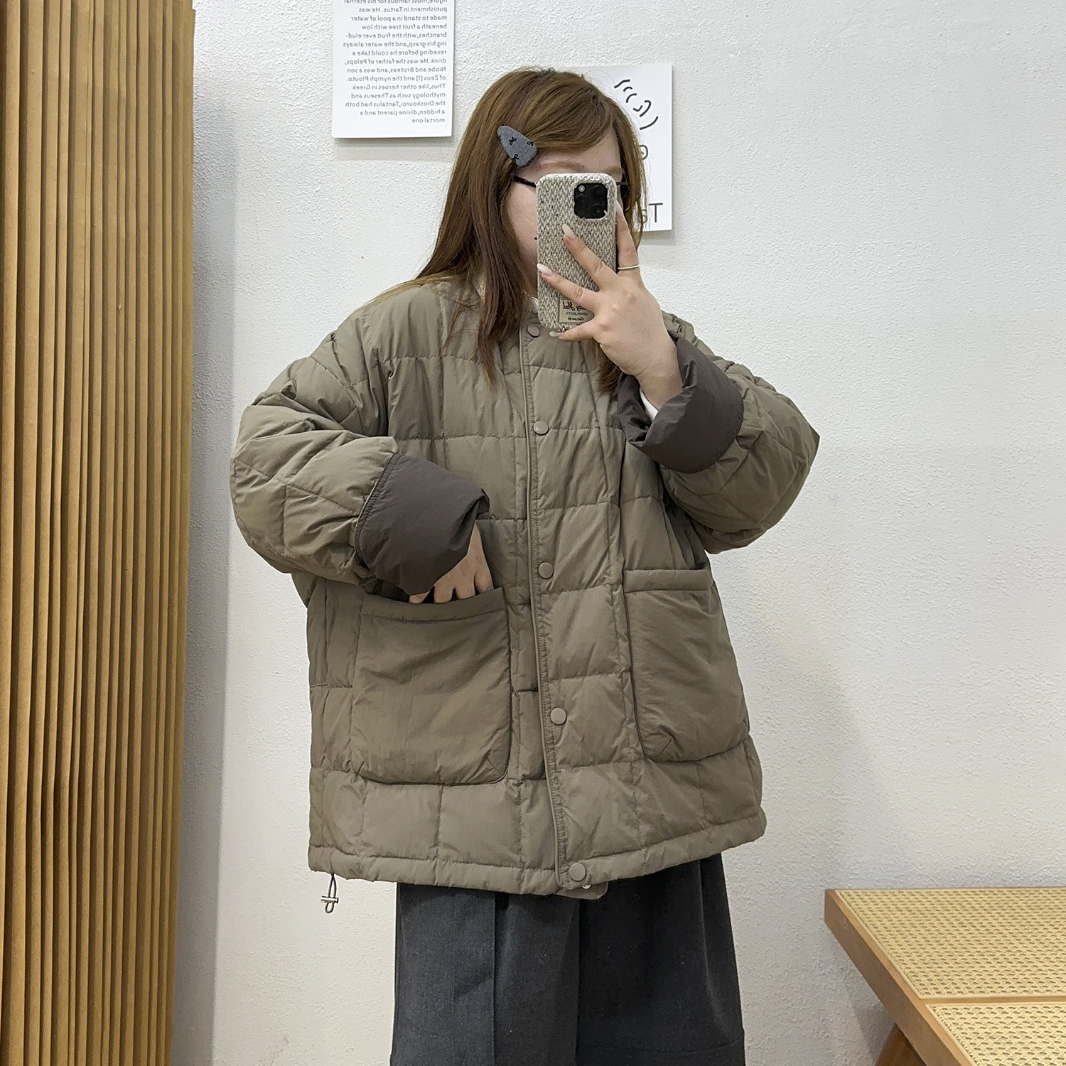 平湖羽绒服V领圆领薄款轻便纯色简约白鸭绒女内胆轻薄加大码外套