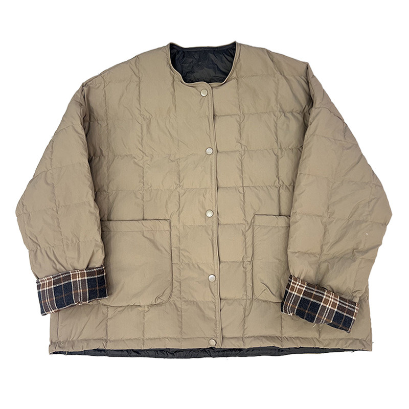 淘宛宛大码女装韩系复古菱格羽绒服2025冬季胖mm撞色翻领白鸭绒外套
