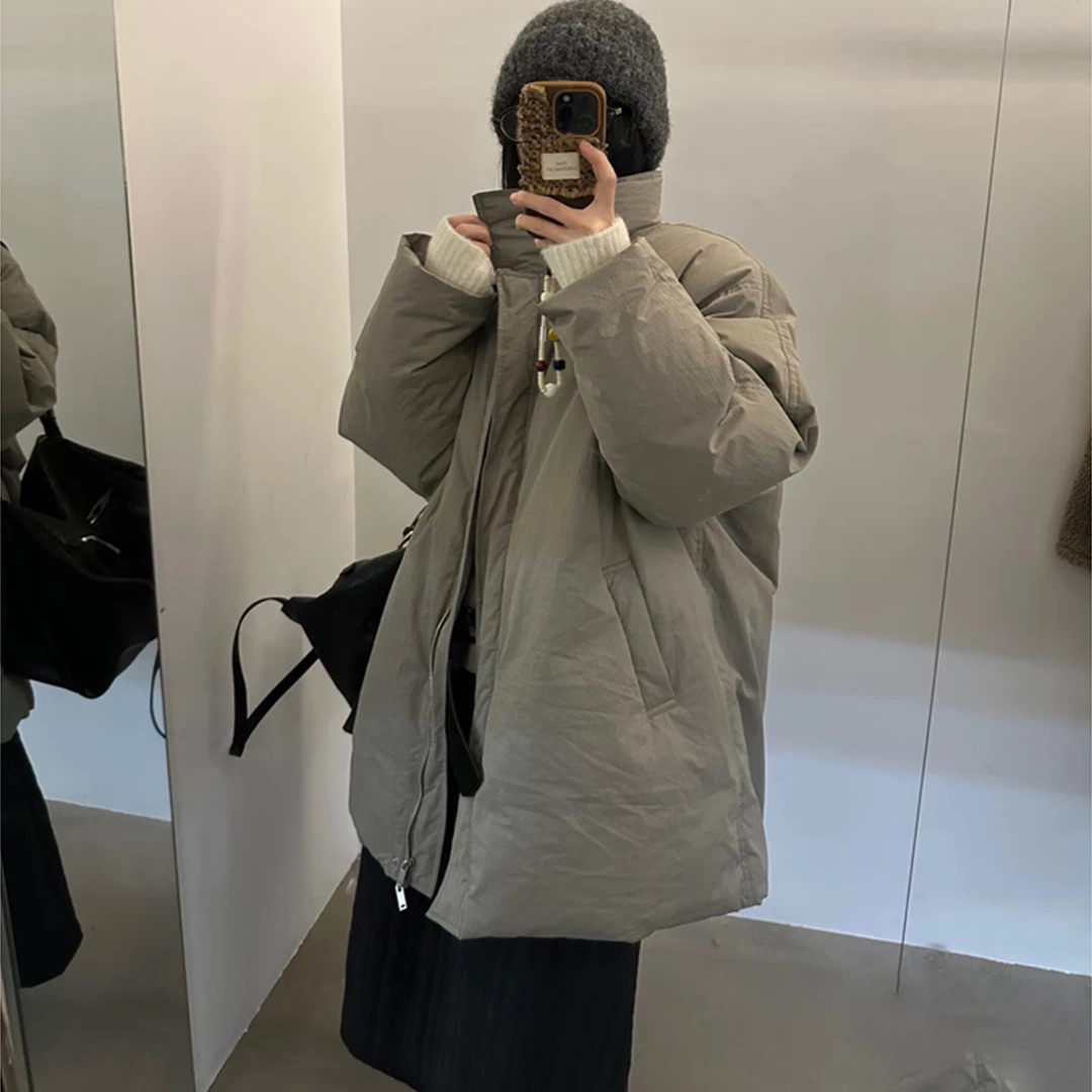 淘宝2025新款中长款韩系立领羽绒服女冬季高级感宽松工装95白鹅绒外套