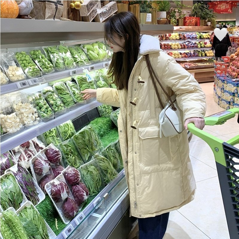 淘连帽中长款羽绒服女过膝收腰显瘦保暖外套冬季新款