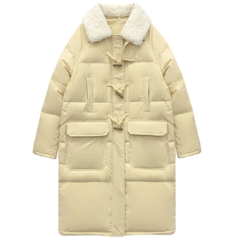 天猫90白鸭绒外套女秋冬季新款毛绒大翻领韩系时尚休闲学院长款羽绒服