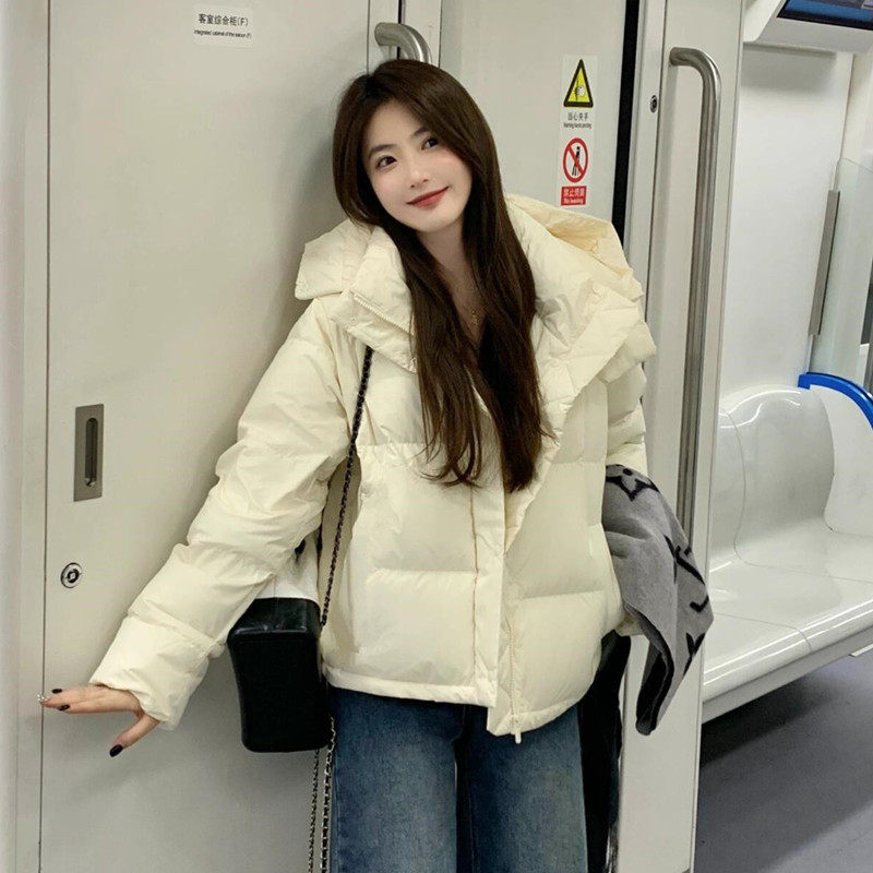 天猫泡沫蓬松90白鸭绒羽绒服女短款冬季新款加厚保暖小个女面包服外套