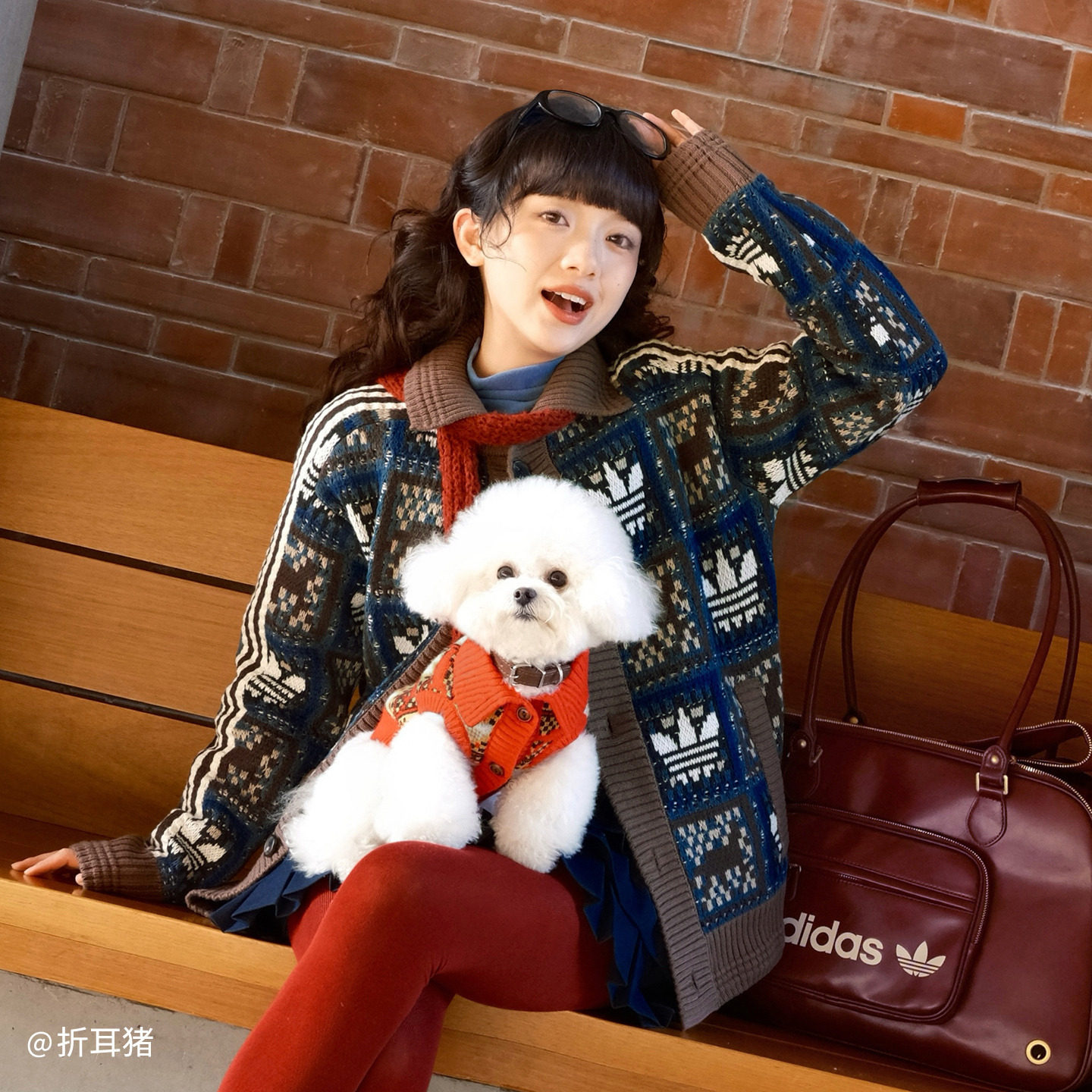 天猫何与同款新年款慵懒风毛衣开衫外套男女秋冬adidas阿迪达斯三叶草