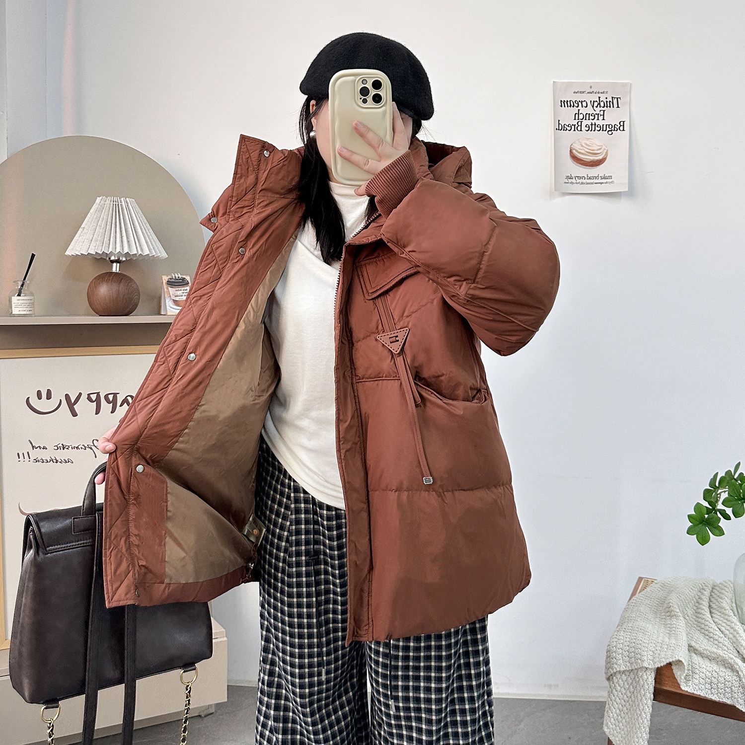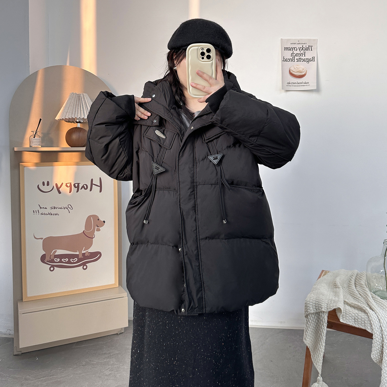 淘宝宛宛大码中长款女冬季2024新款宽松胖MM保暖连帽羽绒鸭绒外套