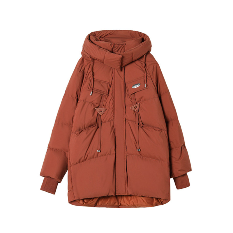 淘连帽中长款羽绒服女过膝收腰显瘦保暖外套冬季新款