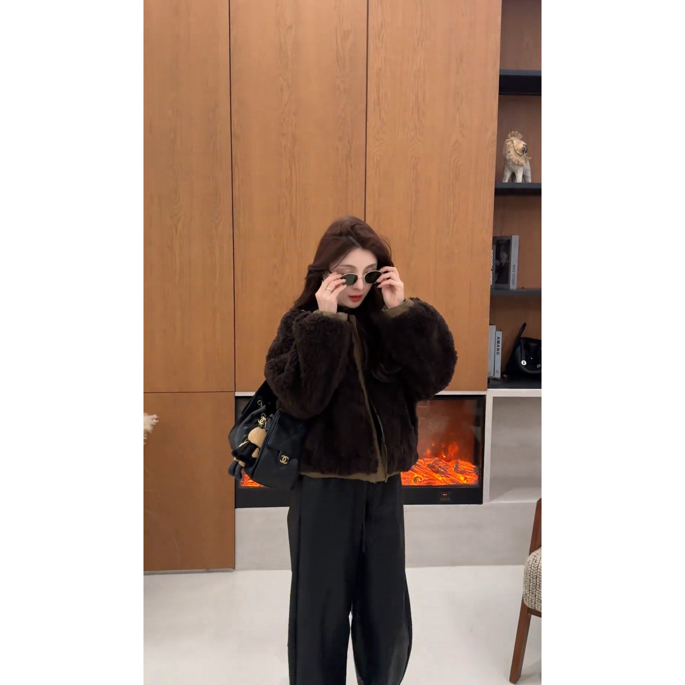 时然大码麂皮绒厚外套冬装加厚短款皮衣棉服胖mm新款女装夹克上衣