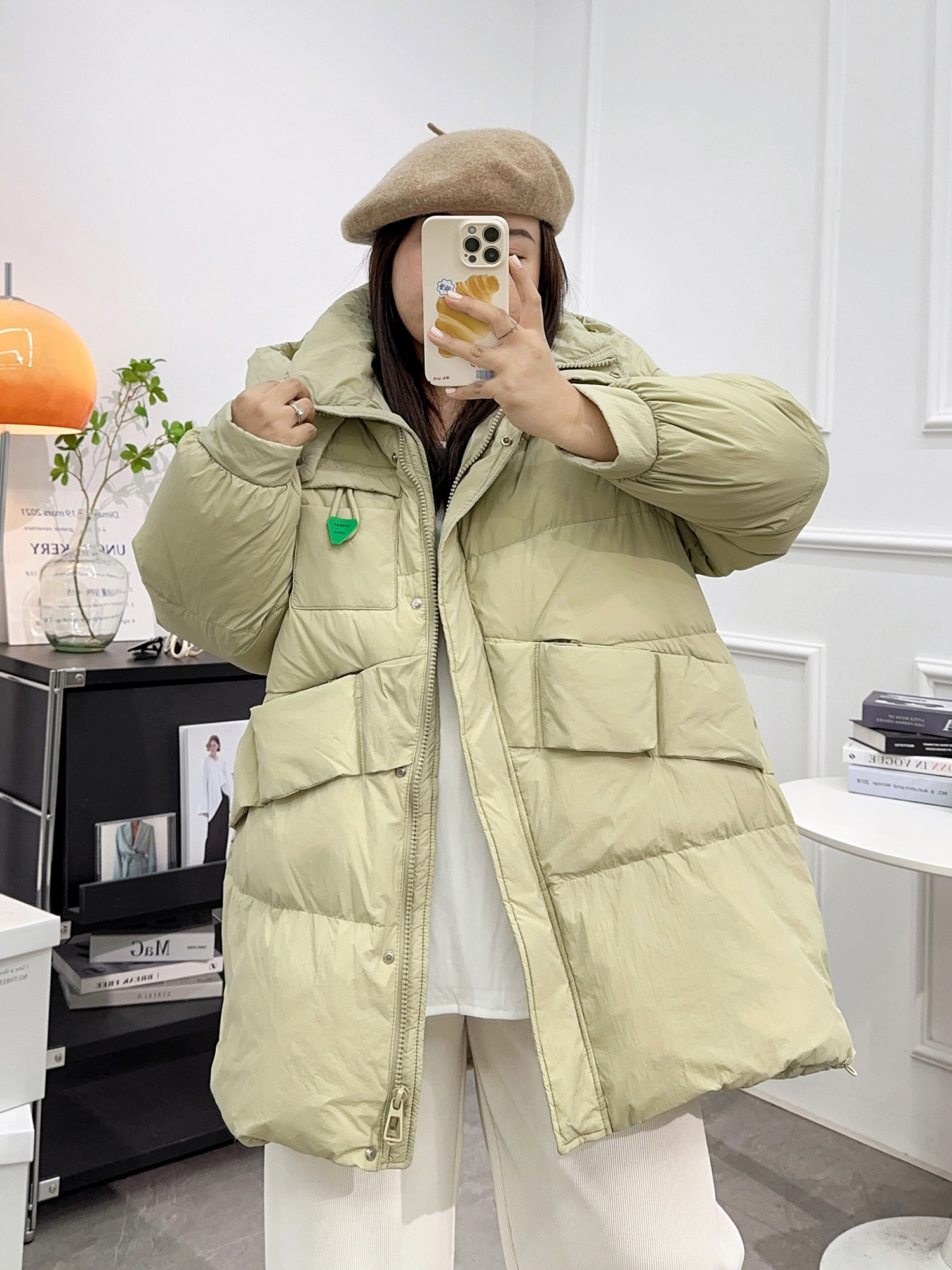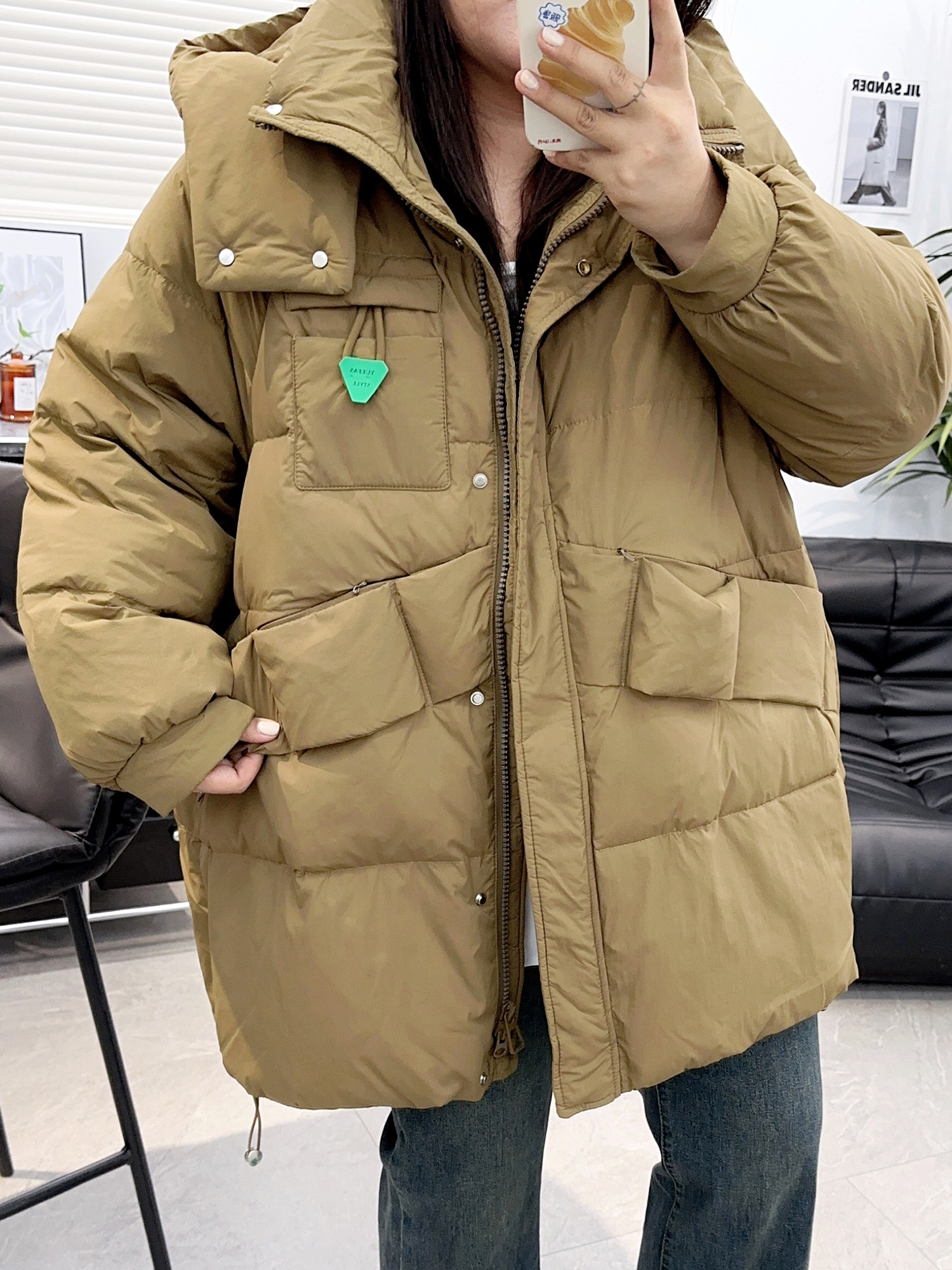 淘连帽中长款羽绒服女过膝收腰显瘦保暖外套冬季新款