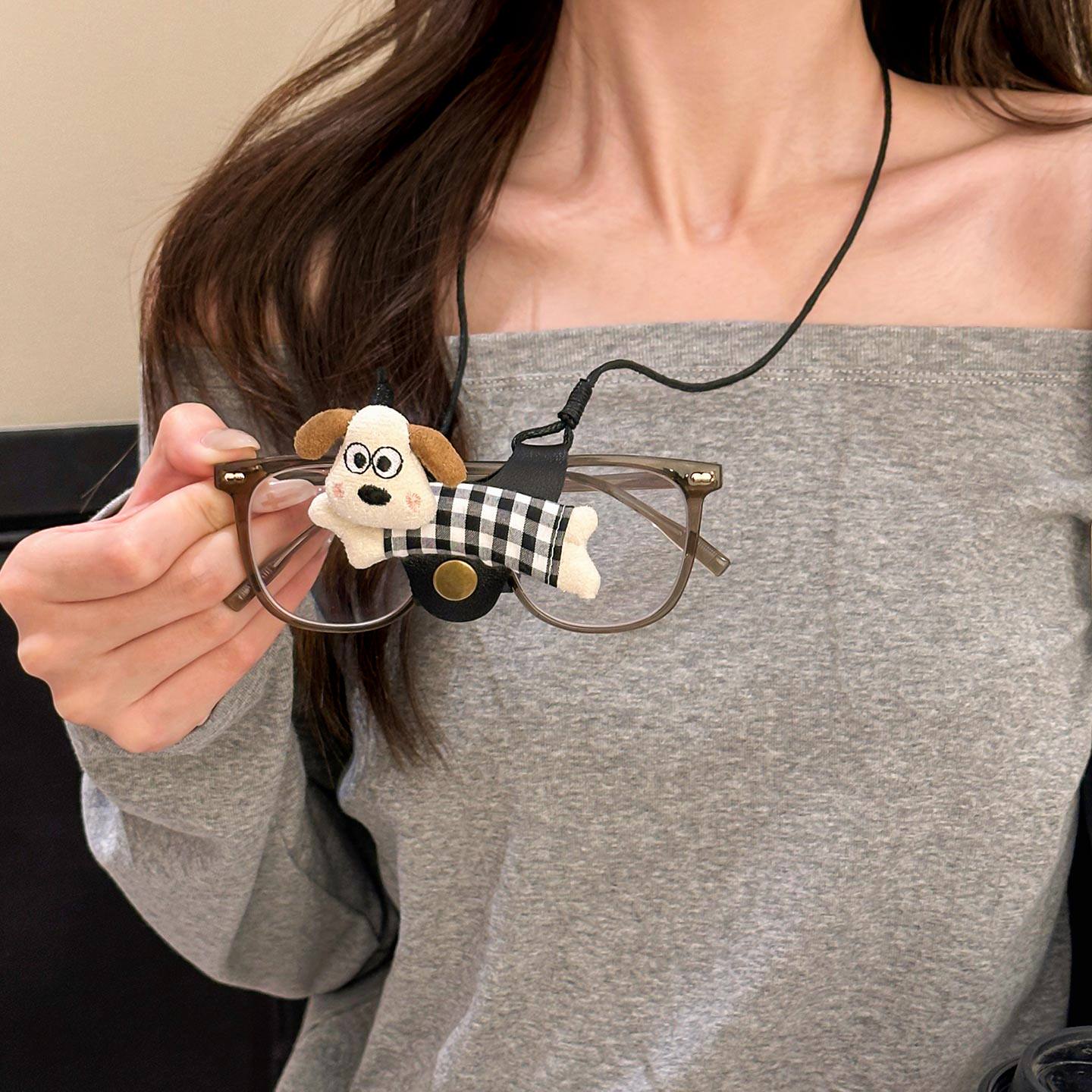 天猫可爱小狗墨镜挂绳便携式防脱落收纳挂脖眼镜夹收纳太阳镜挂链项链