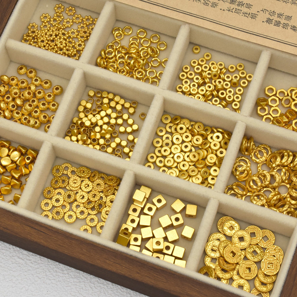 淘18k包金保色沙金哑光圆珠子手工diy饰品配件金色项链手链串珠散珠