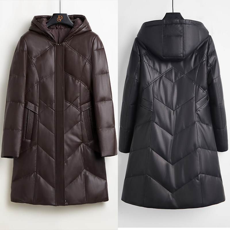 真皮羽绒服女中长款2025海宁冬新款水貂毛领绵羊皮白鸭绒皮衣外套