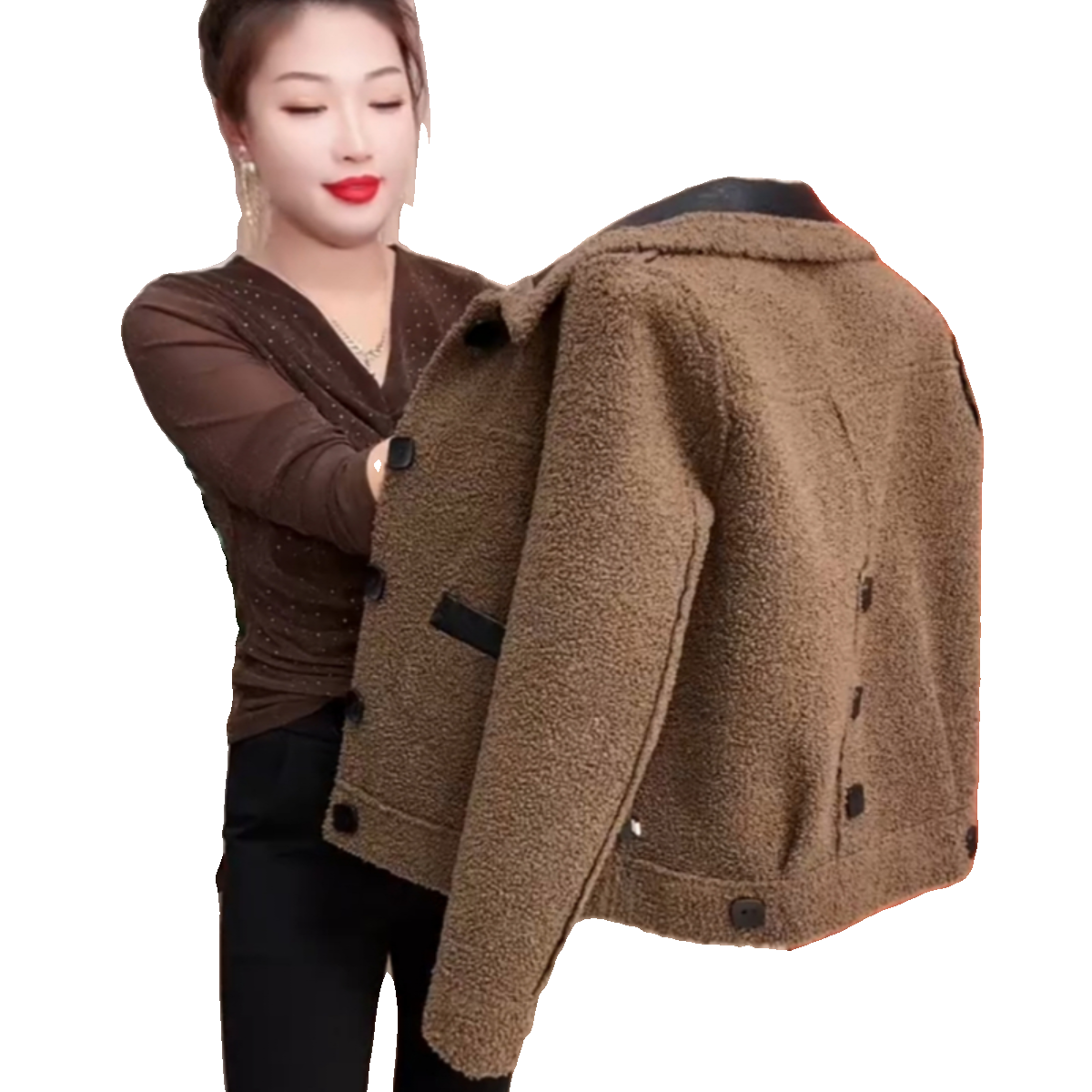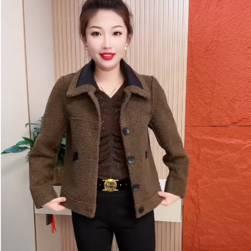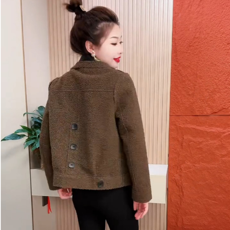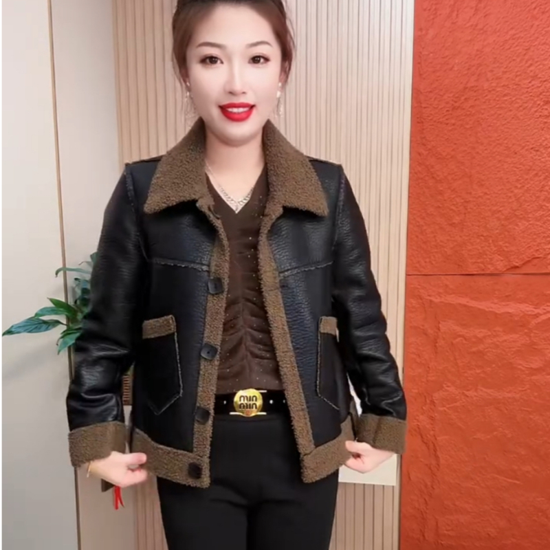 淘宝皮衣短外套2023秋冬新款时尚百搭PU皮毛一体外套加厚翻领两面上衣