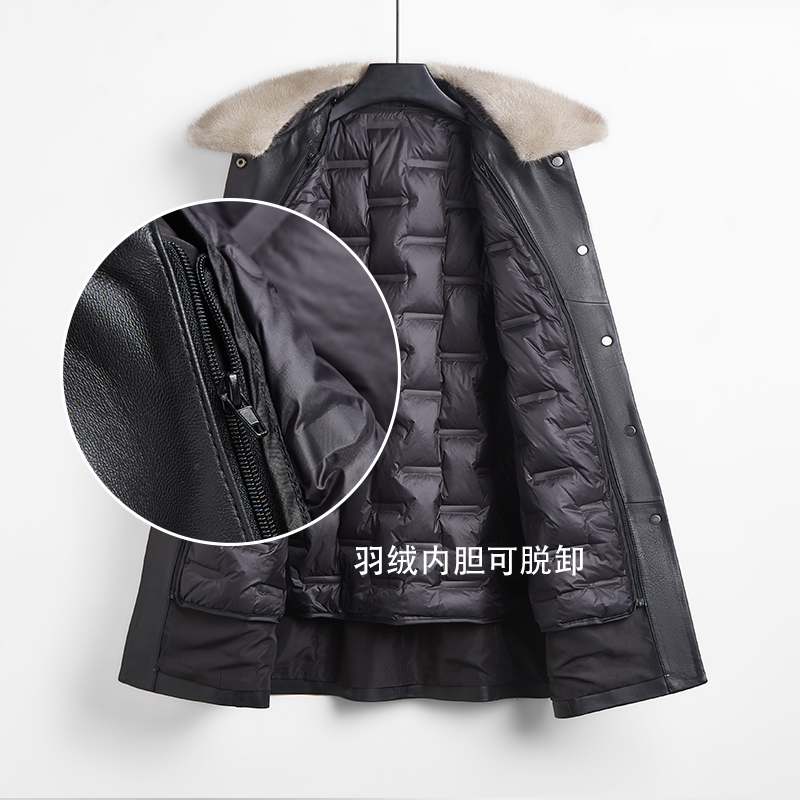 真皮羽绒服女中长款2025海宁冬新款水貂毛领绵羊皮白鸭绒皮衣外套