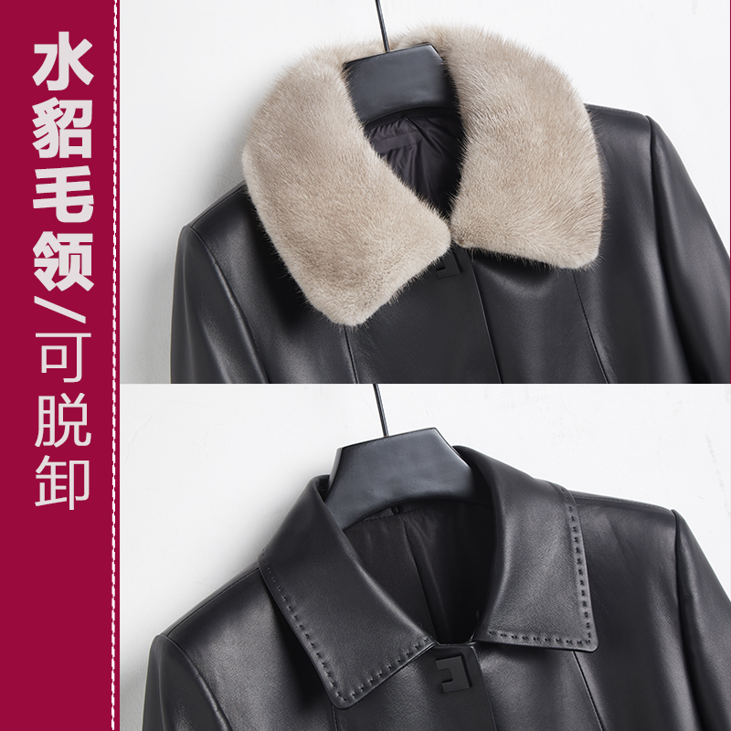 天猫法歌弟海宁真皮皮衣女中长款绵羊皮羽绒服外套水貂毛领内胆可脱卸