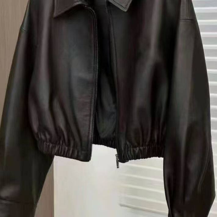 aaaaxbbb 蒸汽列车 复古宽松翻领皮衣高级感韩系慵懒外套百搭女秋