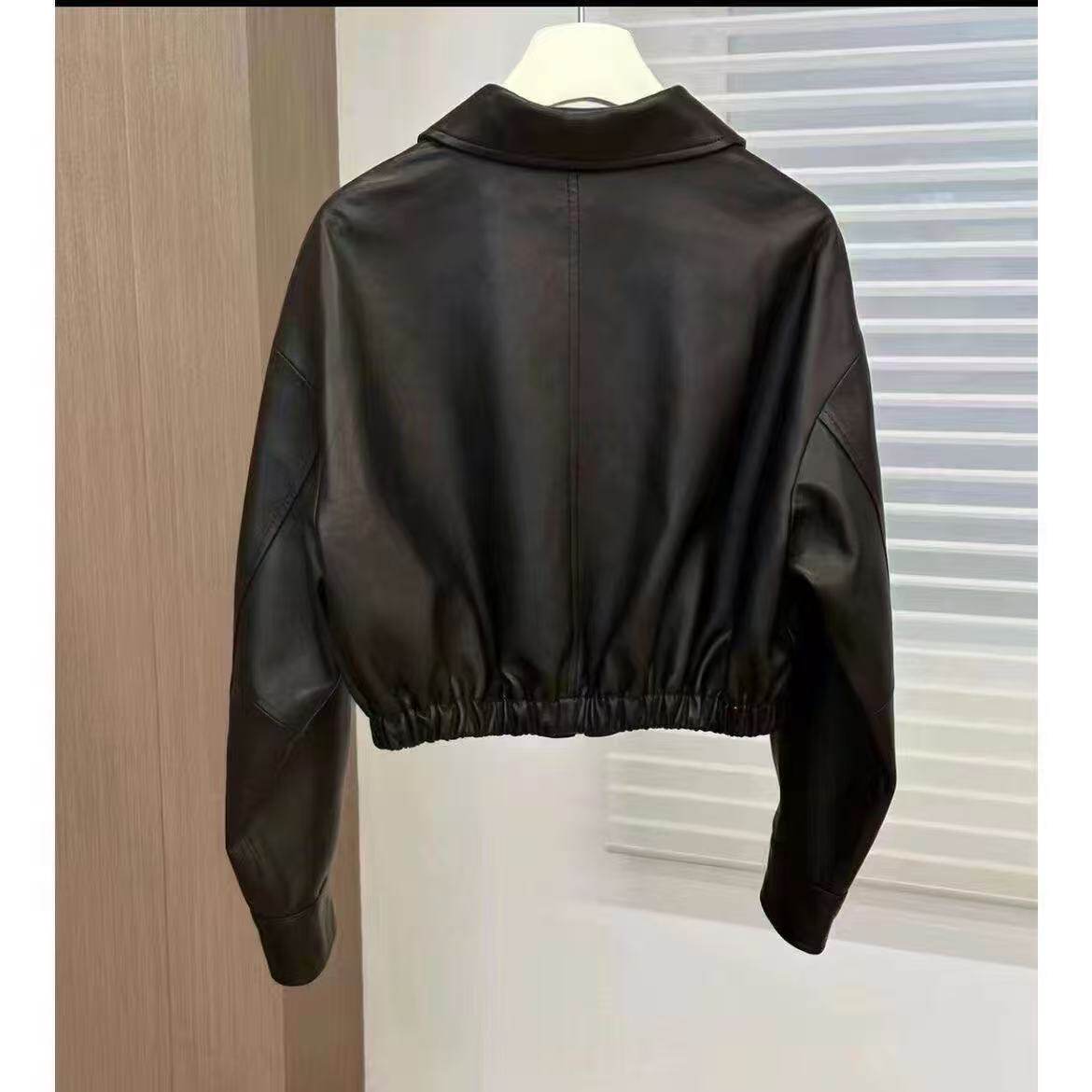 艾诺丝尚忆皮衣2026春时尚气质百搭POLO领短款皮衣外套女101122