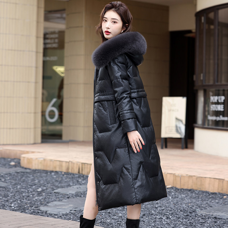 淘宝2025冬新款狐狸毛领海宁皮衣真皮羽绒服女中长款连帽加厚皮草外套