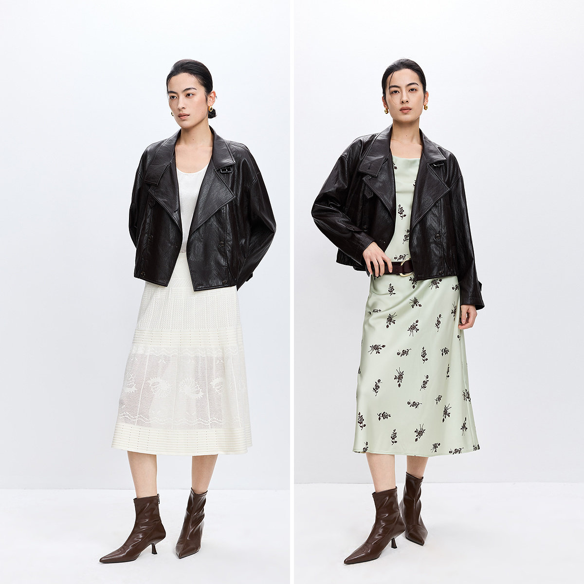 LILY2026春秋新款复古美拉德皮衣外套,以经典短款剪裁融合现代设计美学,打造帅气不失优雅的通勤百搭单品。采用质感细腻的仿皮材质,呈现温暖高级的美拉德色调,复古韵味十足。利落肩线与微收腰设计凸显身形,搭配金属拉链与简约口袋,细节精致有型。无论是搭配高腰裤、半身裙还是连衣裙,都能轻松驾驭职场与休闲场景,展现独立自信的女性魅力。轻盈挺括的版型兼顾舒适度与时尚感,是春秋季节不可或缺的时尚利器,轻松穿出都市摩登范儿。