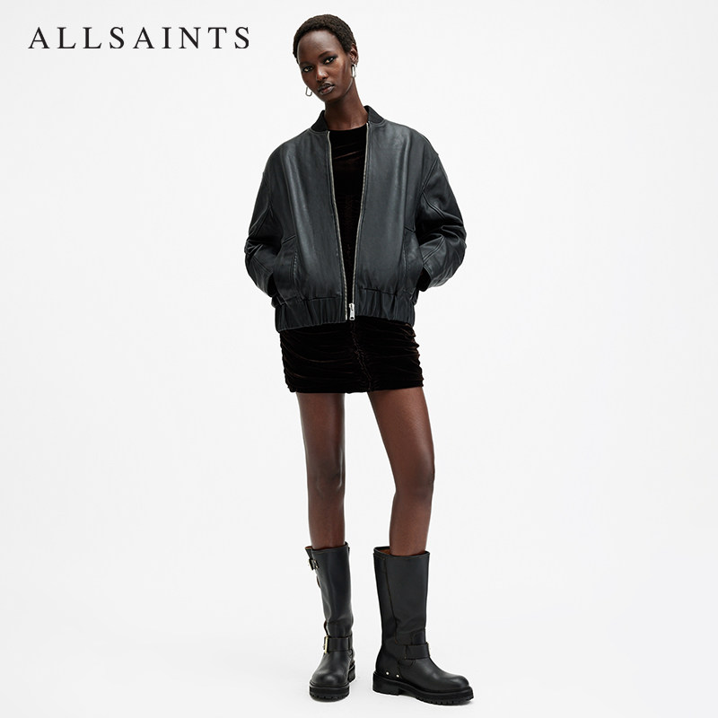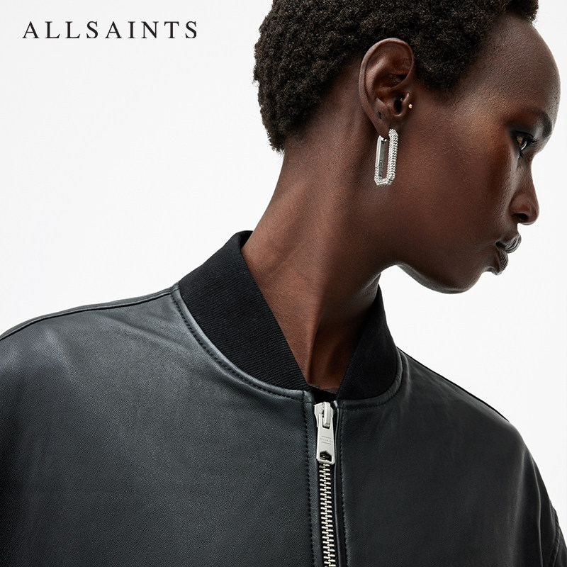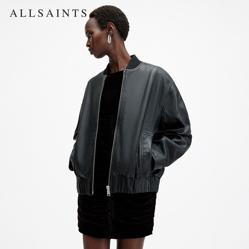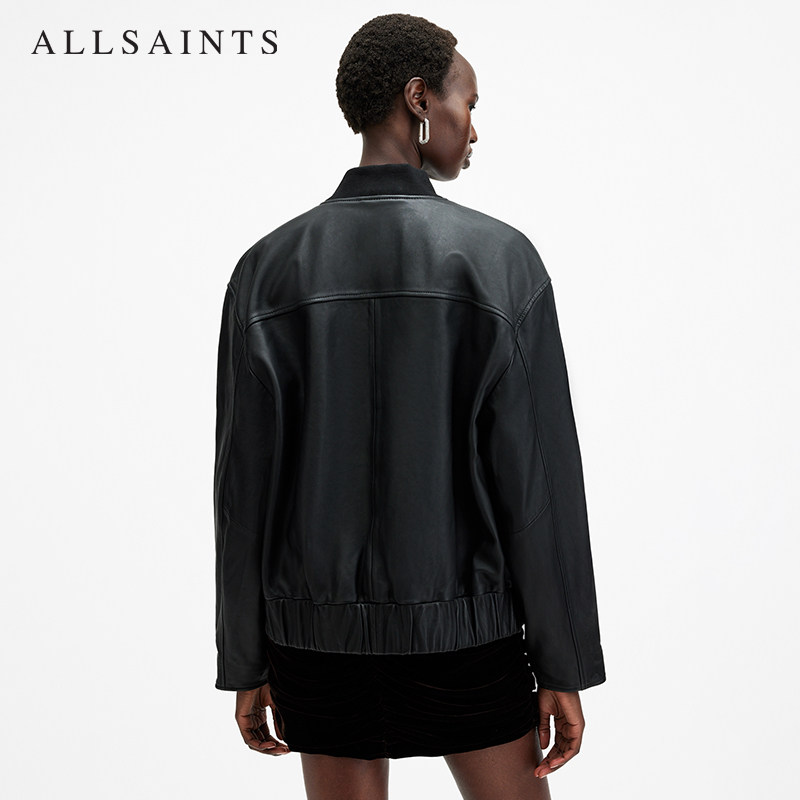 天猫ALLSAINTS女士飞行员皮衣Yara棒球领真皮夹克秋季W074LB