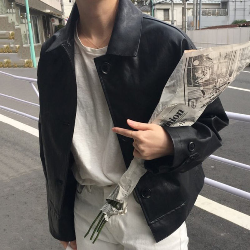 这款韩国chic秋季复古帅气翻领单排扣宽松休闲长袖机车服皮衣短外套,融合经典机车元素与现代时尚设计,展现女性率性不羁的个性魅力。采用优质仿皮材质,质感挺括,触感细腻,兼具保暖与舒适。宽松版型设计,不挑身材,轻松穿出慵懒随性的街头风格。翻领搭配单排金属扣,复古中透出硬朗帅气,短款剪裁拉长腿部线条,凸显高挑身形。无论是搭配牛仔裤、短裙或连衣裙,都能轻松打造秋日时尚造型,是追求个性与潮流女性的必备单品。