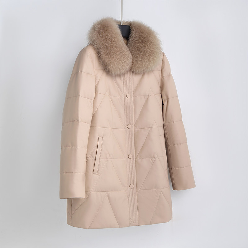 淘冬季新品进口油腊皮水貂领白鹅绒宽松皮衣欧货羽绒服中长外套女潮