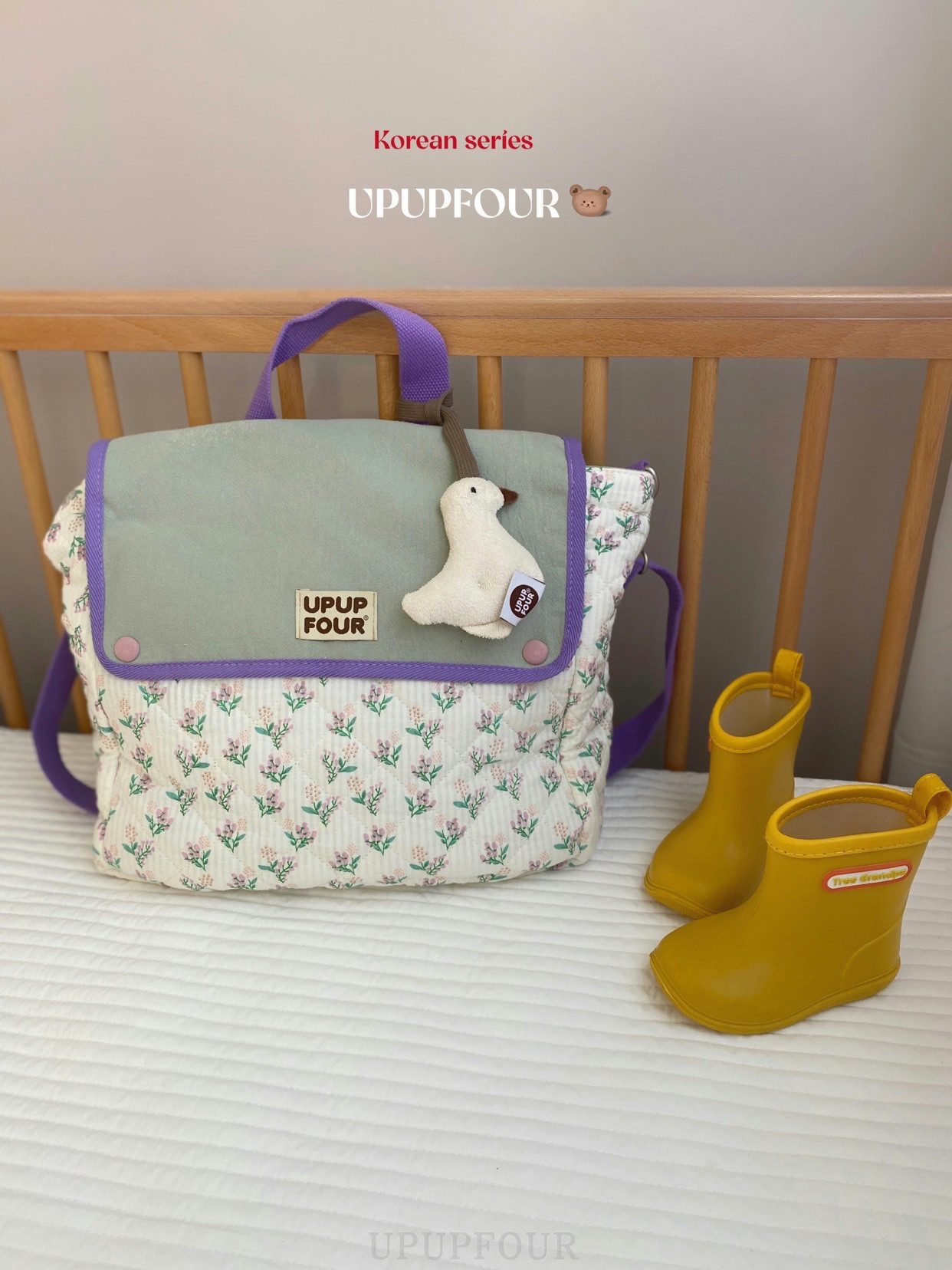 淘宝upupfour紫野美波|原创自制韩国多功能纯棉绗缝刺绣妈咪包亲子包