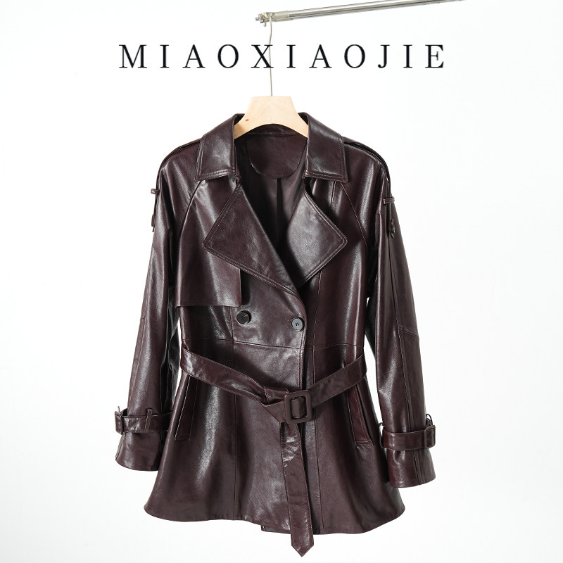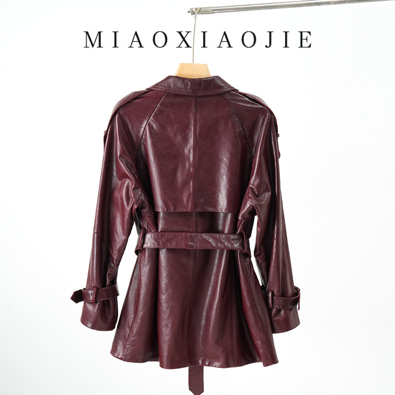 安可拉2025新款红色高级感油蜡绵羊皮真皮风衣,甄选优质绵羊皮,经油蜡工艺处理,质感细腻、光泽自然,兼具挺括与垂坠感。经典中长款设计,搭配精致收腰剪裁,完美勾勒女性优雅曲线,彰显干练与知性气质。复古正红色调浓郁高级,百搭且吸睛,轻松驾驭职场通勤或日常出街。内里做工考究,细节处尽显匠心,防风保暖与时尚美感兼具。无论是搭配裙装或裤装,皆能演绎出独特的高级质感,是秋冬衣橱中不可或缺的时尚单品,诠释现代女性的自信与魅力。