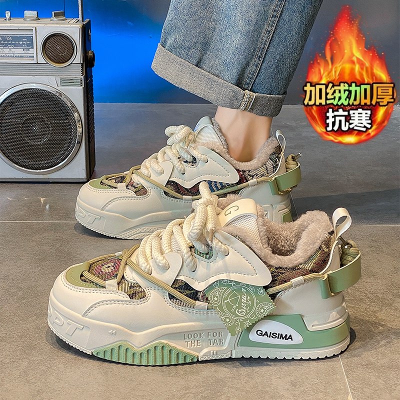 这款男鞋专为冬季设计,集保暖、舒适与时尚于一体,是学生党的理想选择。采用加绒加厚内里,有效锁温抗寒,即使在严寒天气也能保持双脚温暖。厚底设计不仅提升身高,还增强缓震性能,适合长时间行走。鞋面选用优质耐磨材质,搭配经典板鞋造型,百搭不挑风格,轻松驾驭校园、运动或日常休闲场景。大码设计满足不同脚型需求,松紧适中,穿脱便捷。无论是搭配牛仔裤、运动裤还是束脚裤,都能展现青春活力。兼具功能性与时髦感,是冬季不可或缺的实用单品。