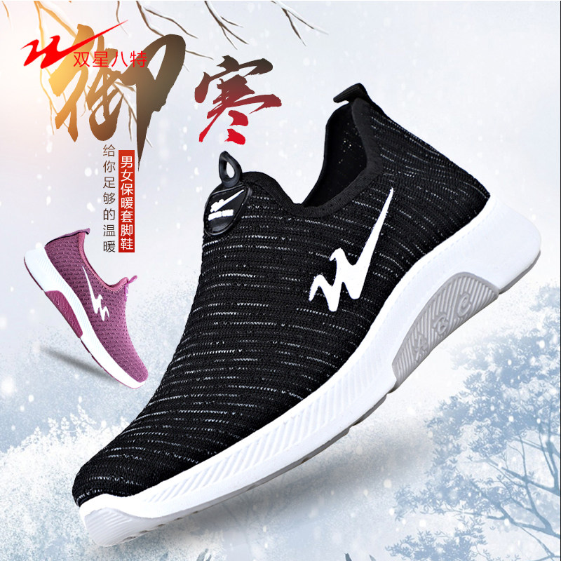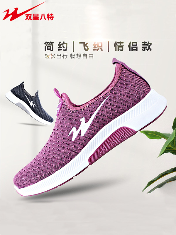 淘宝青岛双星八特春季一脚蹬飞织网面鞋男轻便耐磨休闲鞋女012