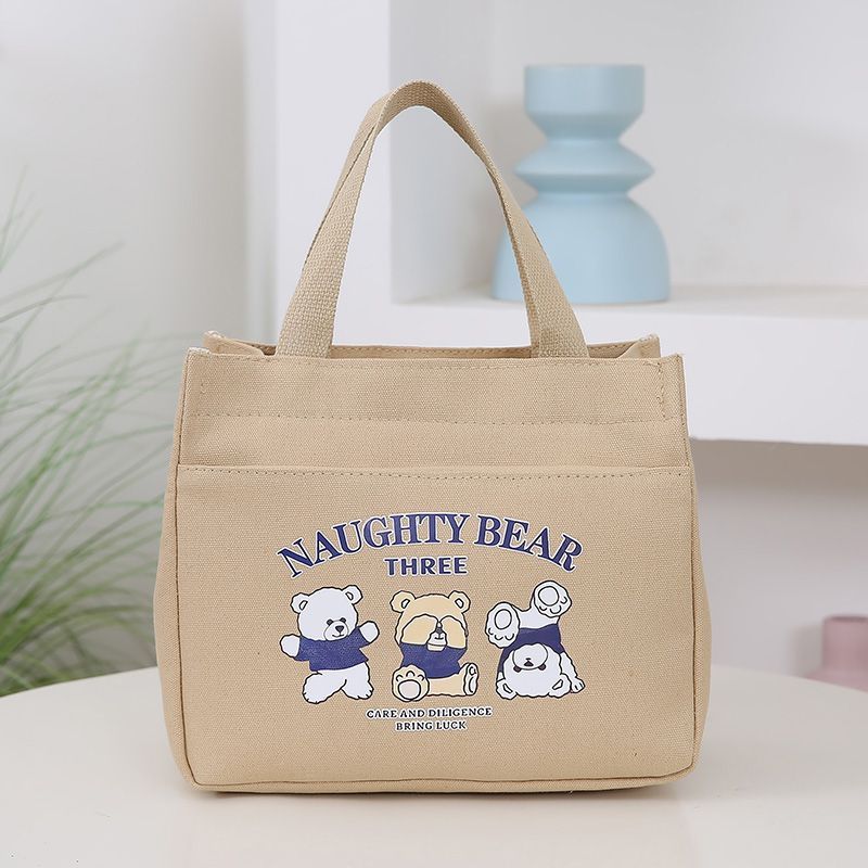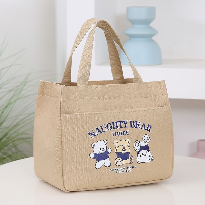 淘宝简约妈咪包学生大容量上班通勤百搭饭盒便当包高颜值帆布手提包