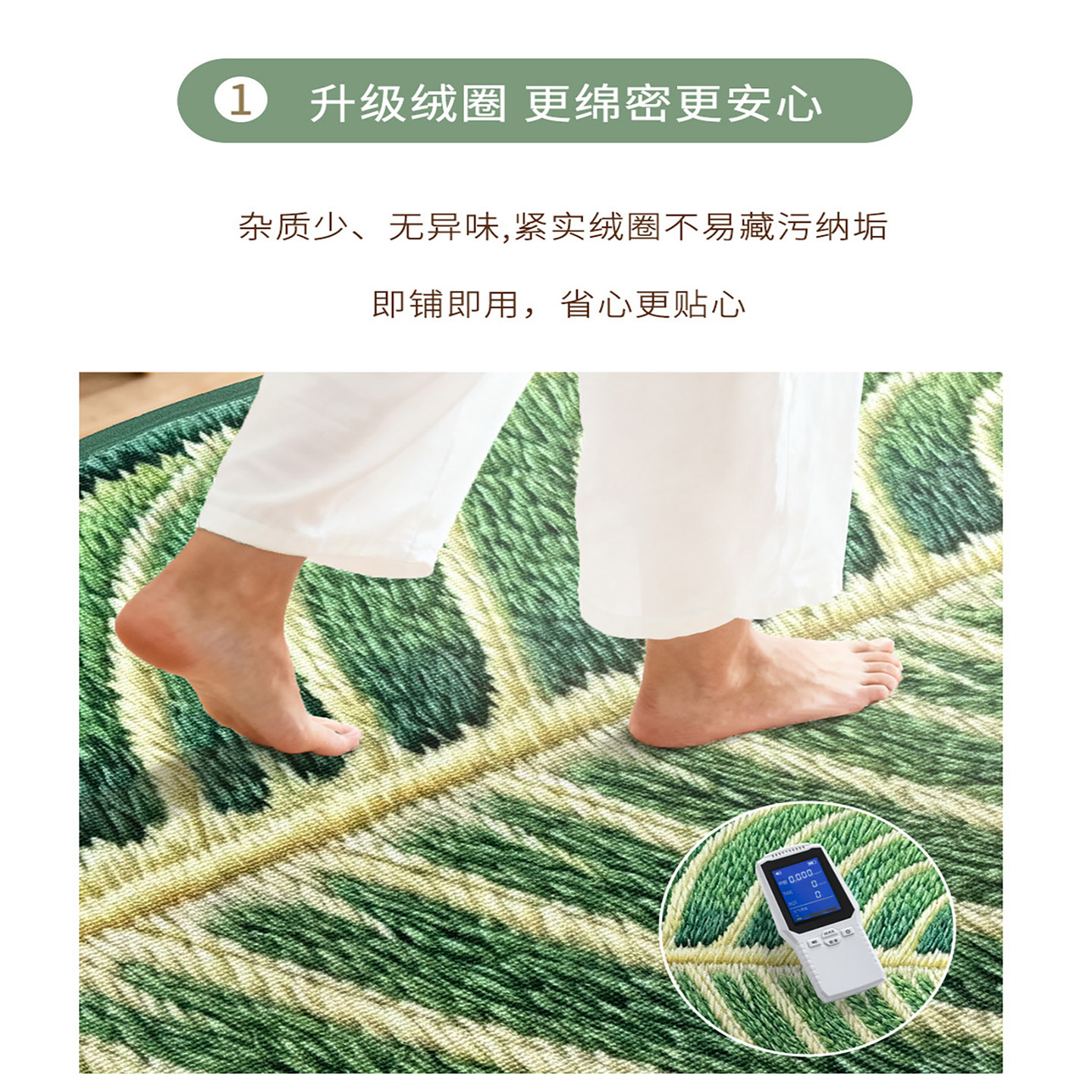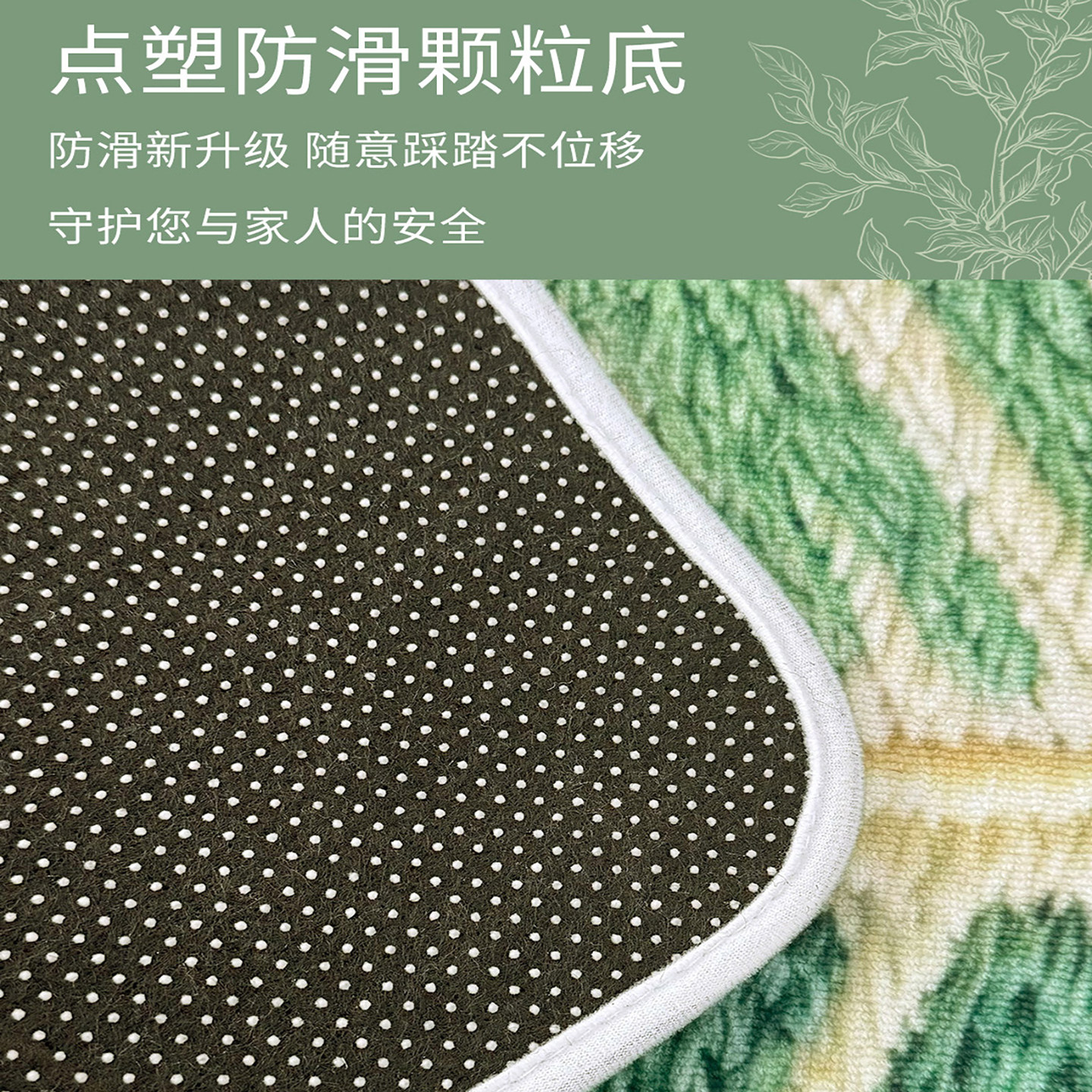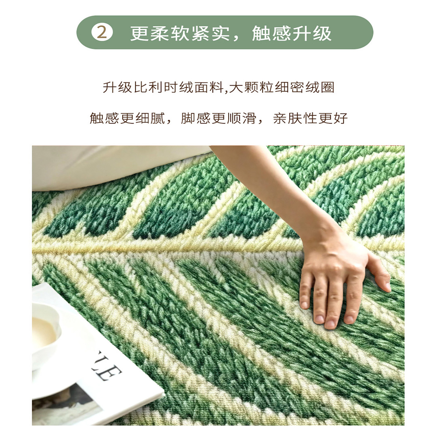 天猫绿色创意艺术卧室床边毯现代简约防水防污主卧床尾房间地毯免打理