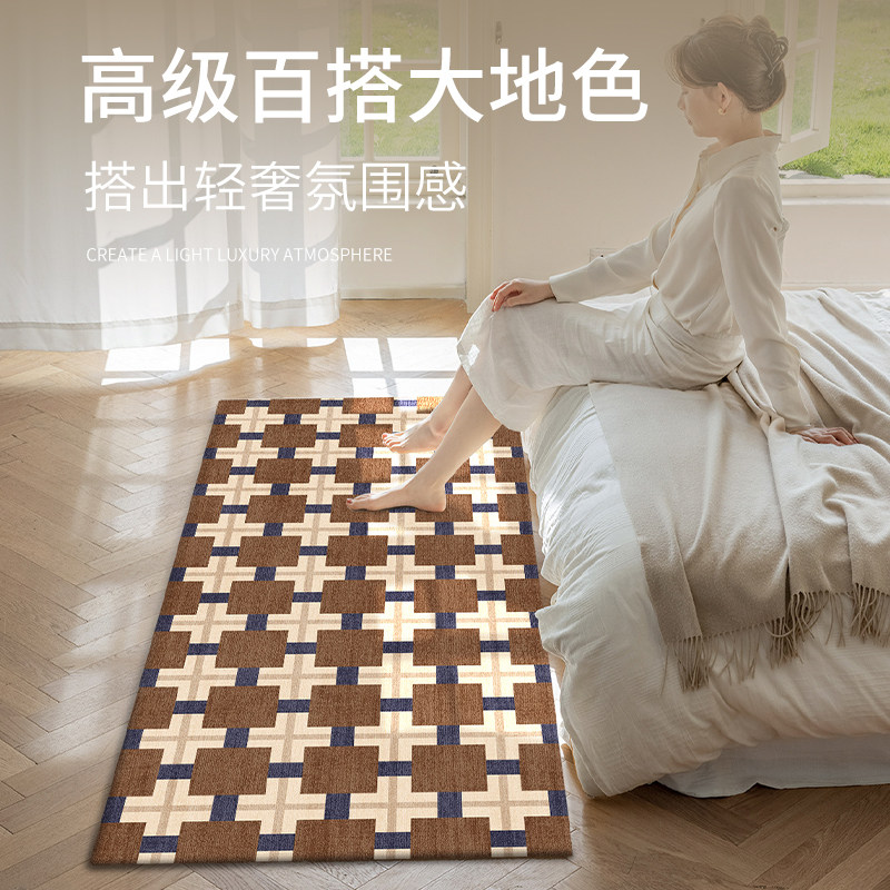 卧室地毯床边毯床尾脚垫防滑免洗可擦高级感家用地垫加厚防水防油