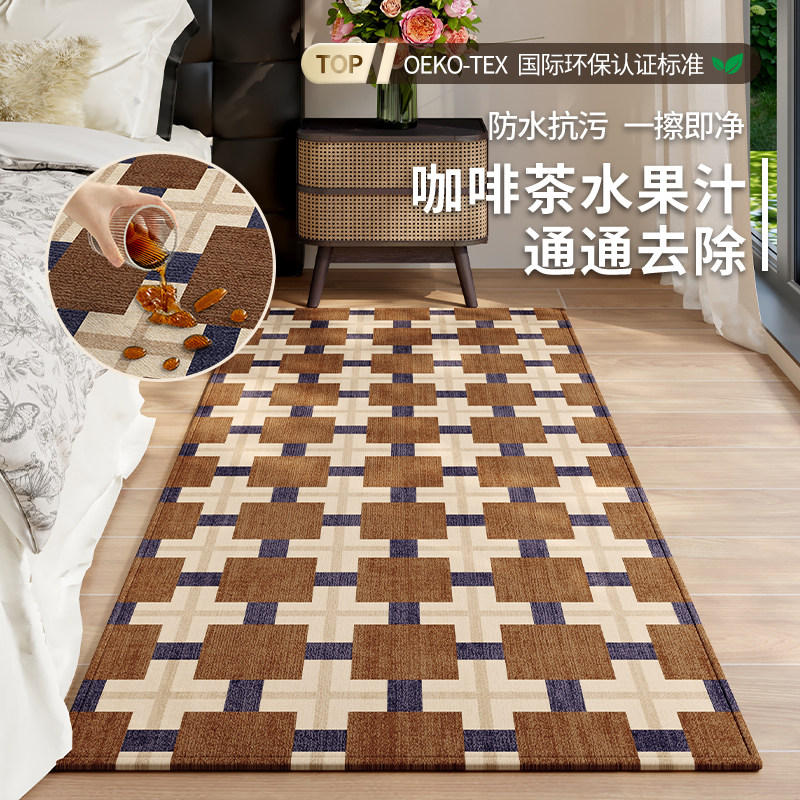中古风卧室床边地毯家用客厅地垫沙发茶几毯防水防污床前床边脚垫