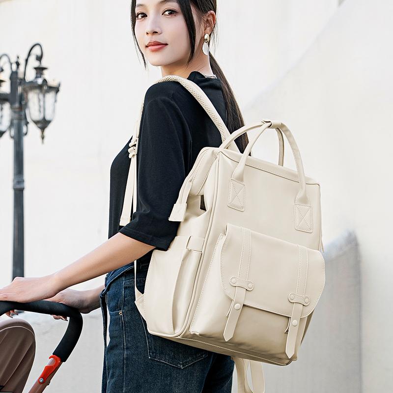 淘宝2025新款PU皮妈咪包母婴外出轻便高颜值宝妈多功能双肩背包大容量
