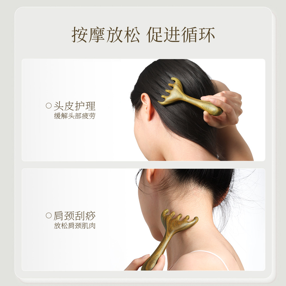 古迪五爪鹿角头部按摩梳,精选天然檀木打造,质地温润细腻,散发淡淡木香。其独特的五爪鹿角造型设计,贴合头部曲线,可深入发丝间隙,有效刺激头皮穴位与经络。日常使用能促进血液循环,缓解头部疲劳,改善睡眠质量,同时兼具刮痧、疏通经络之效。适用于按摩、刮痧、护发等多种场景,是居家养生与日常护理的理想之选。天然材质安全环保,不伤头皮,长期使用有助于强健发根、减少脱发。无论是自用还是馈赠亲友,这款多功能檀木按摩梳都是健康生活的贴心伴侣。